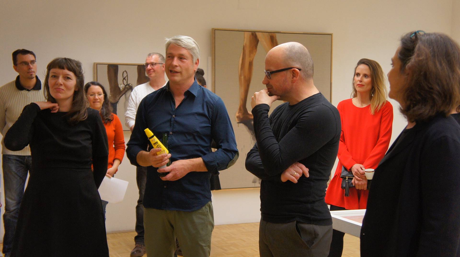 „Marco Spitzars neue Serie „Gelehrtenbeine“ ist eine konsequente Weiterentwicklung seiner „Frage der Größe“. Auch hier begibt er sich wieder in die Welt von Verhältnissen, um den dargestellten Figuren und Gegenständen eine neue Dimension zu verleihen.