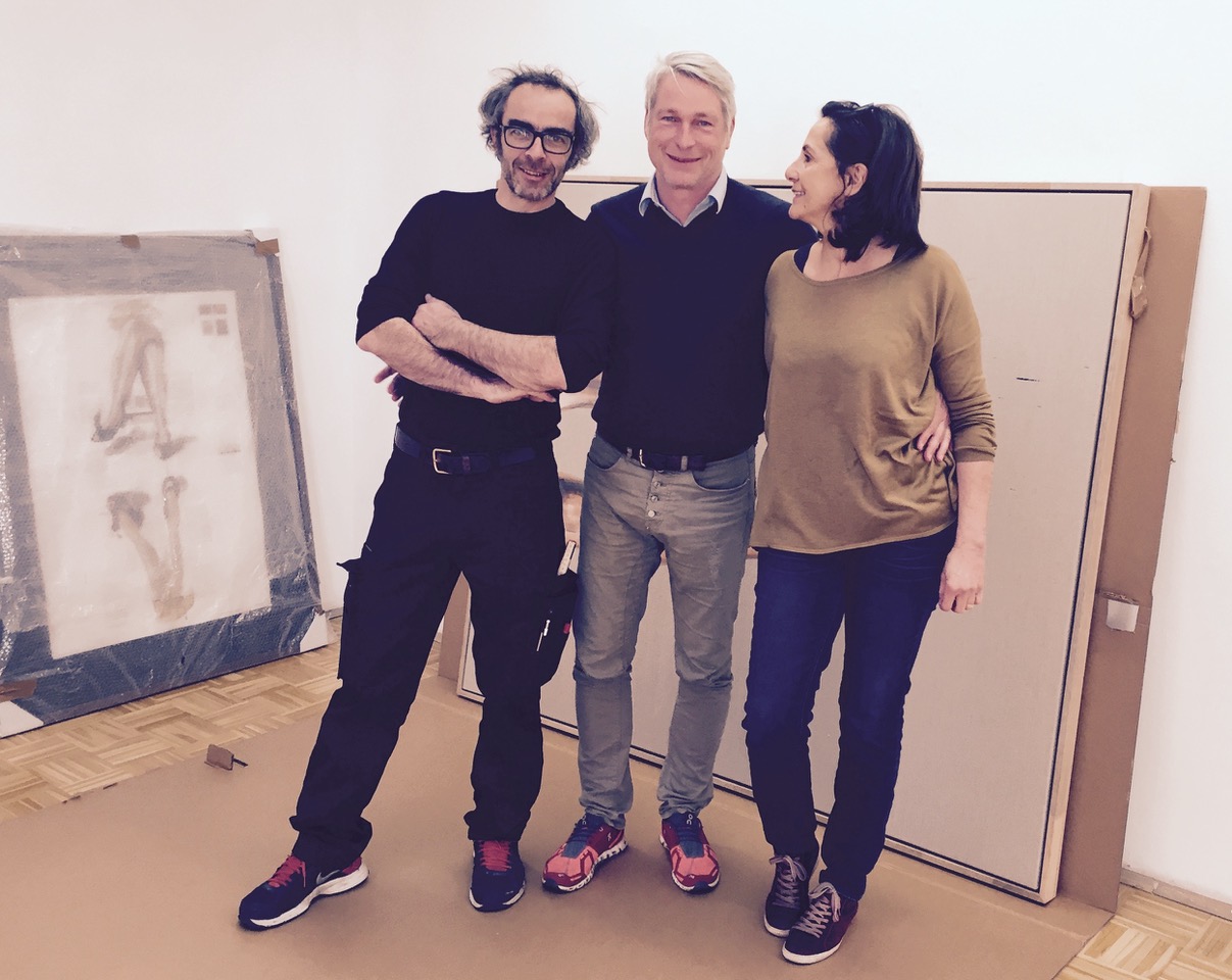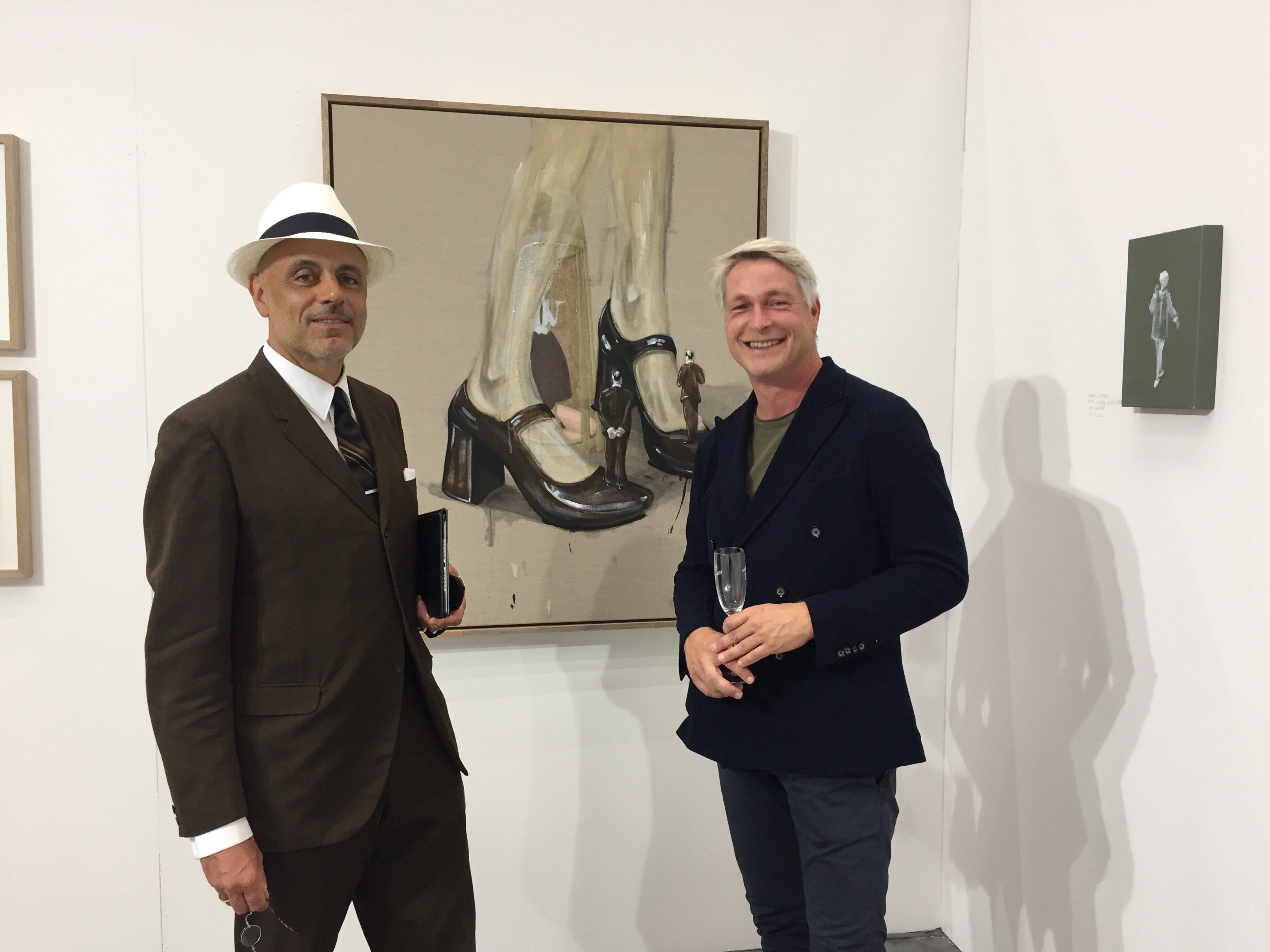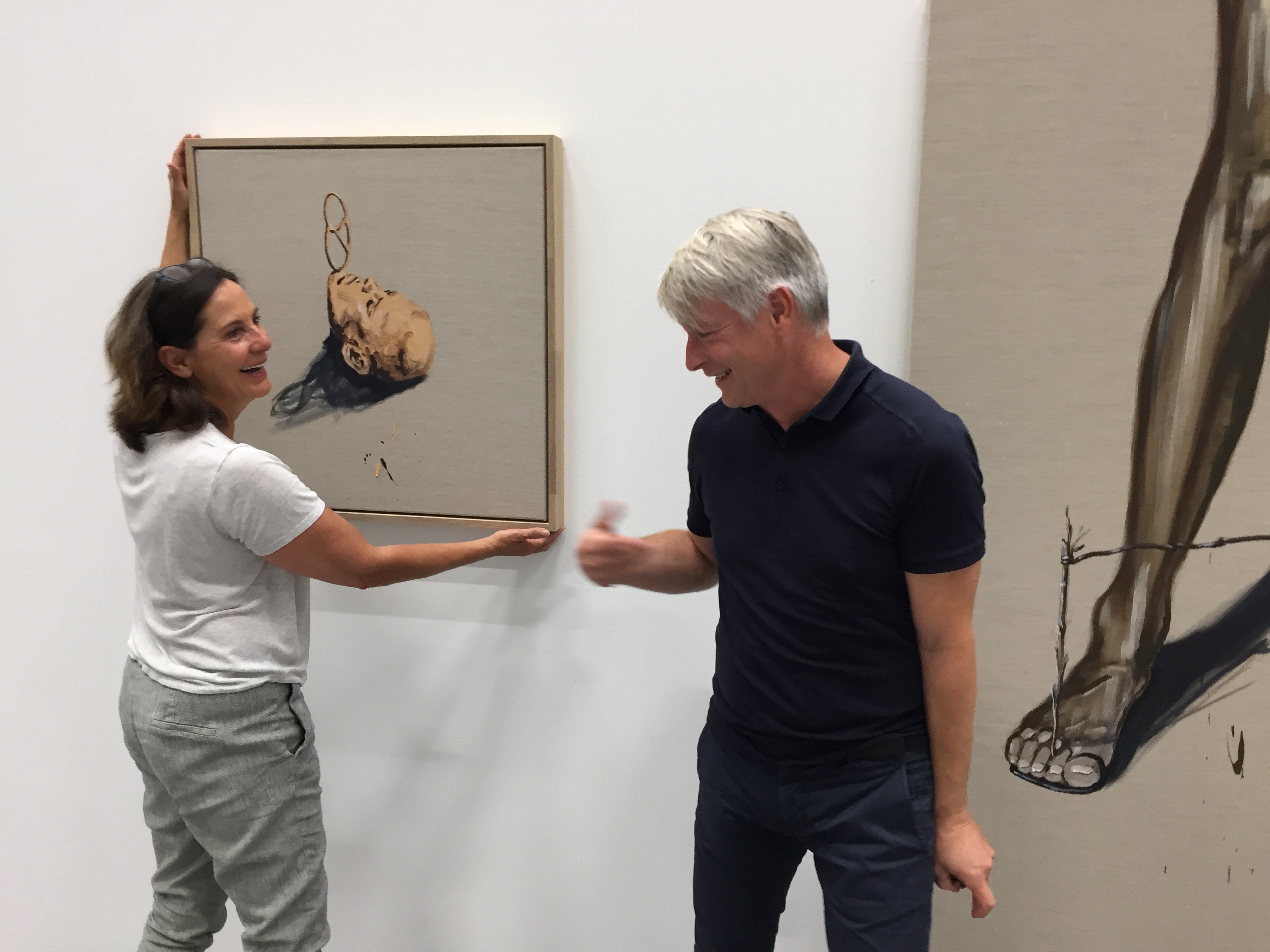 Er kombiniert in seinen neuen Werken Paare, wie sie gegensätzlicher oft nicht sein können. Den überdimensionierten Beinen sind Figuren und Objekte, klein wie Spielzeuge, appliziert. Die Figuren selbst fallen plakativ aus und stellen eine neue Realität abseits des Alltags dar.
