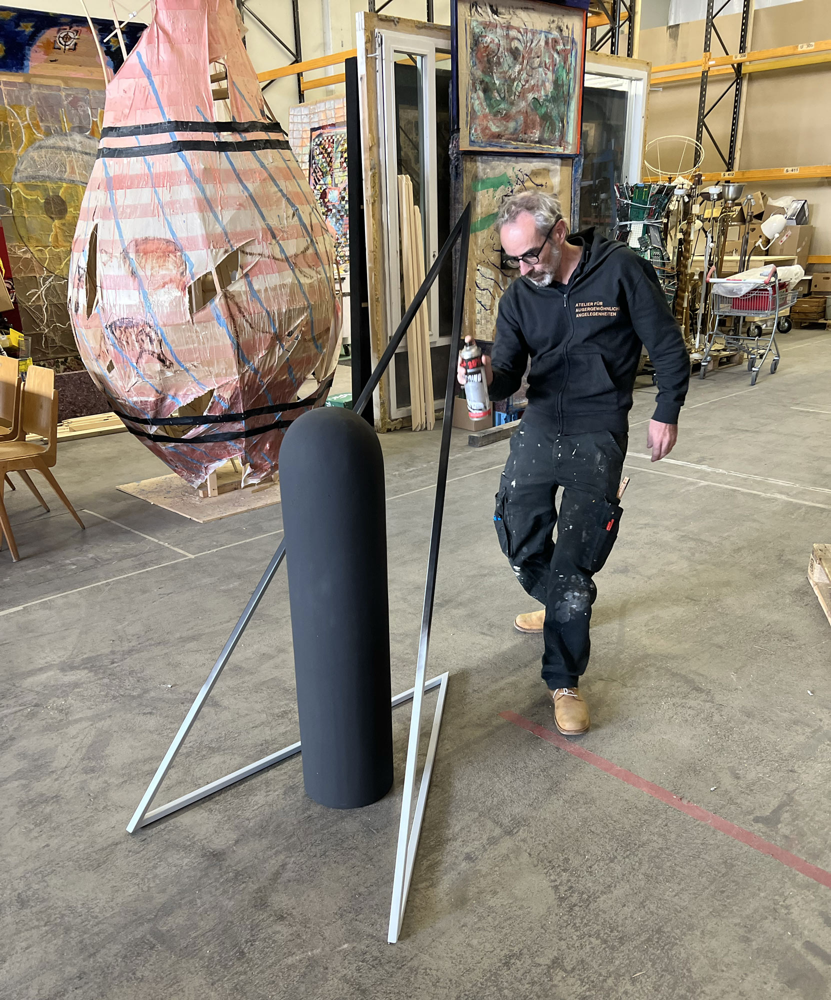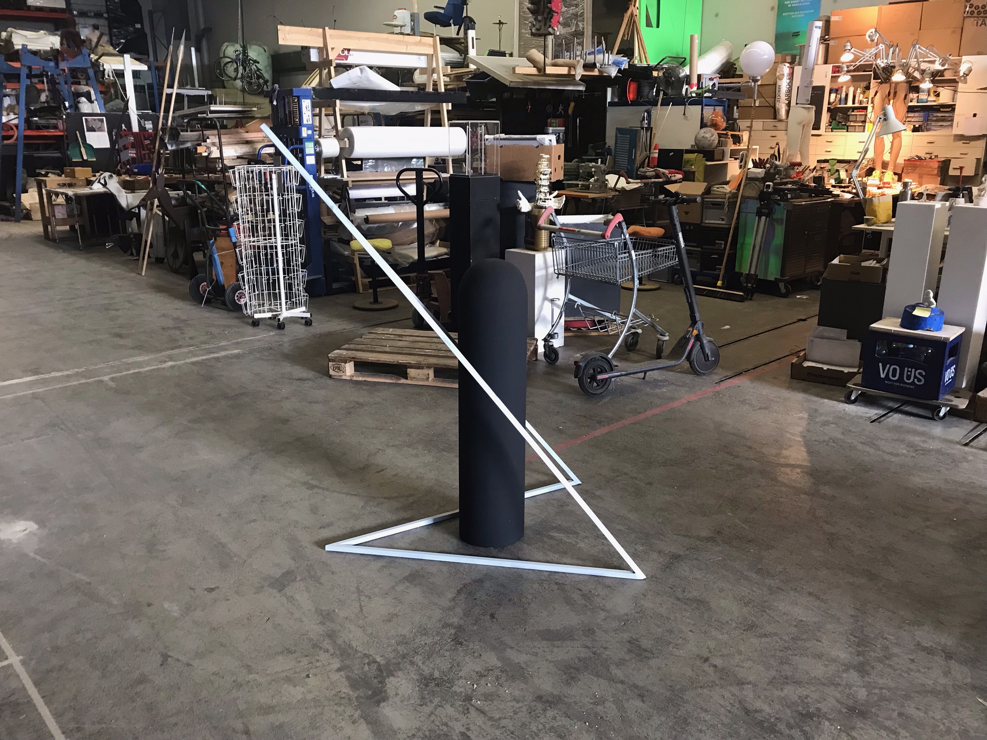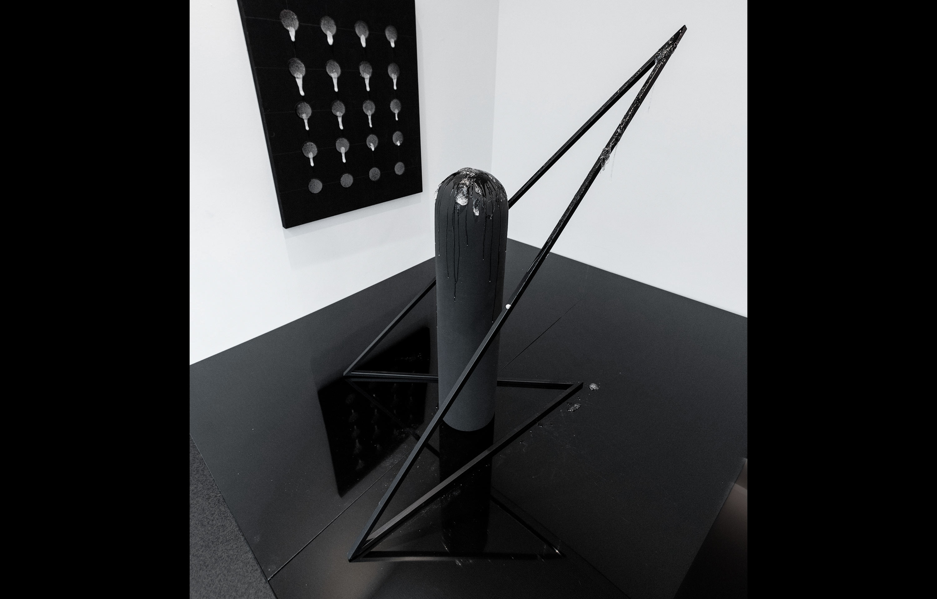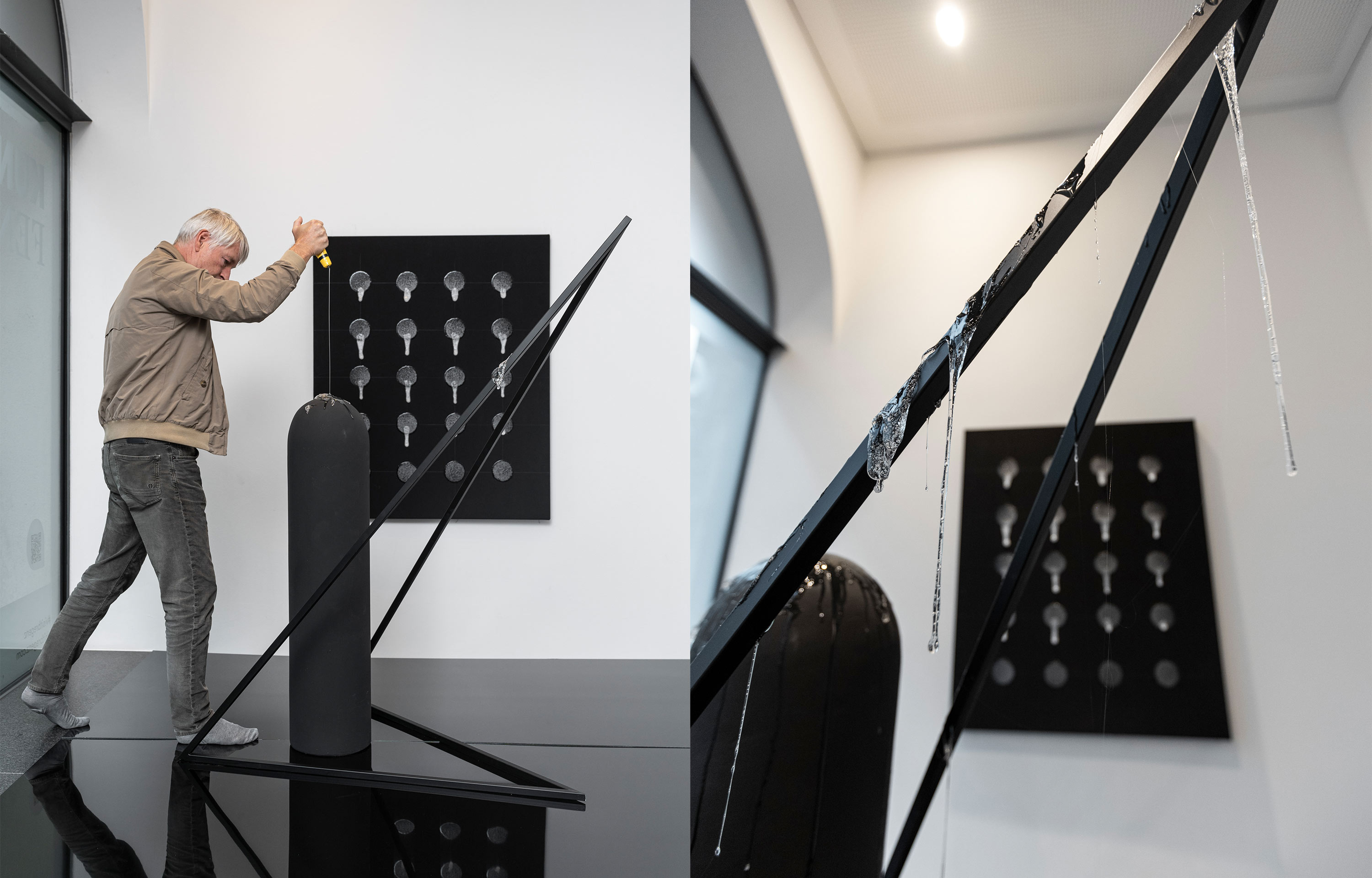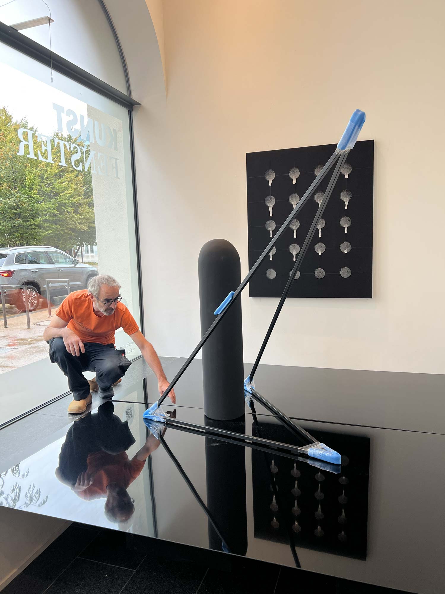 Marco Spitzar präsentiert seine neueste Klebeanordnung, die Skulptur: „Das Ausmaß der Durchdringung“ im Kunstfenster in Bregenz.