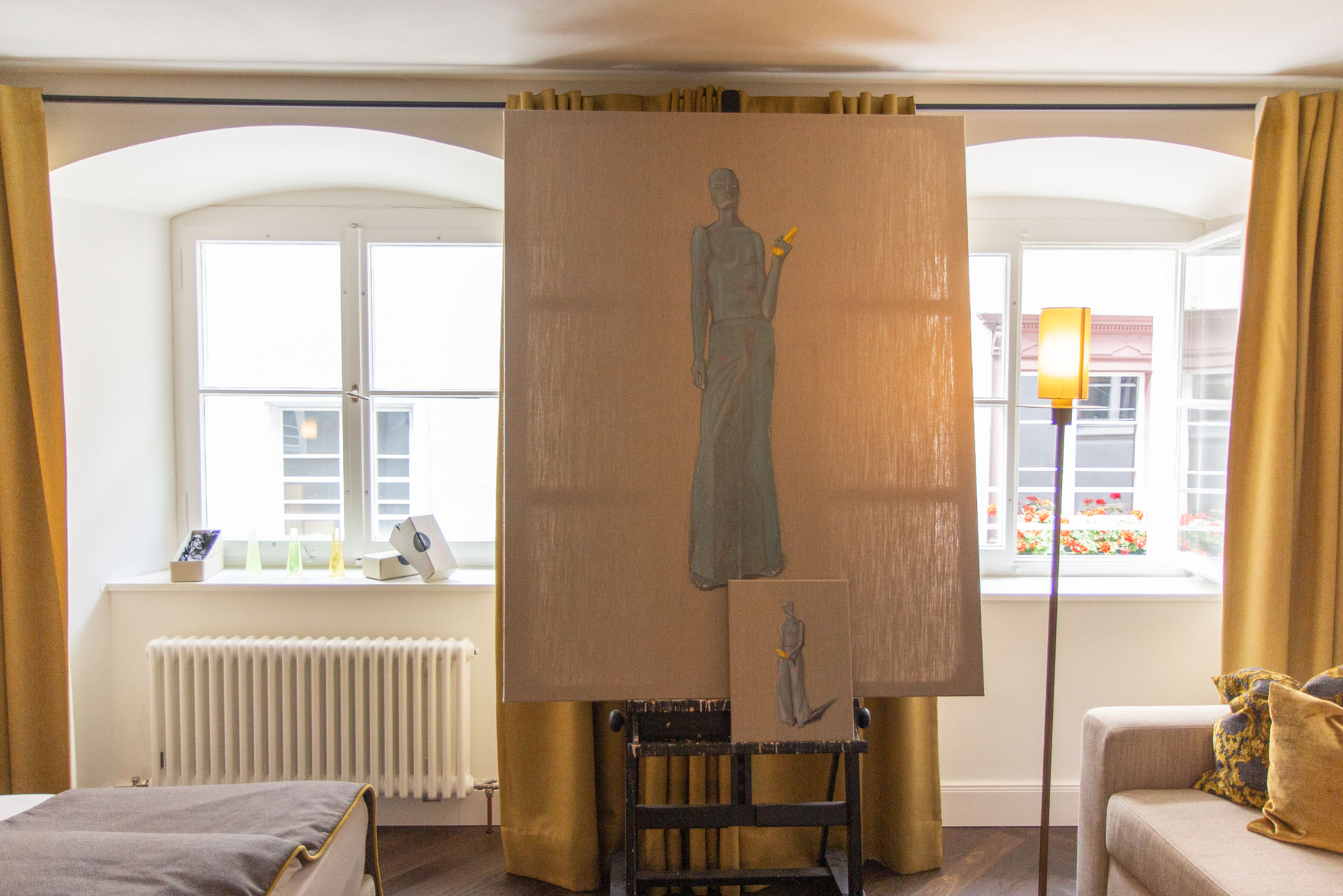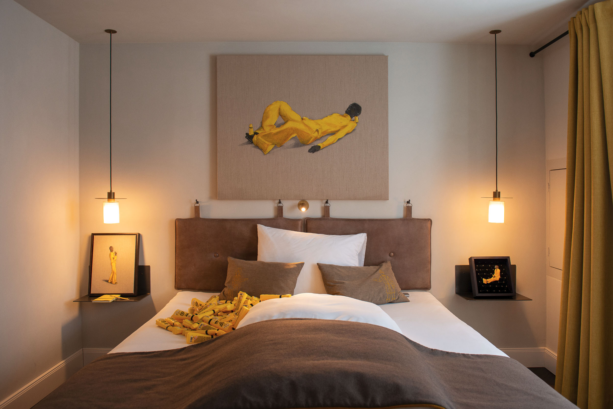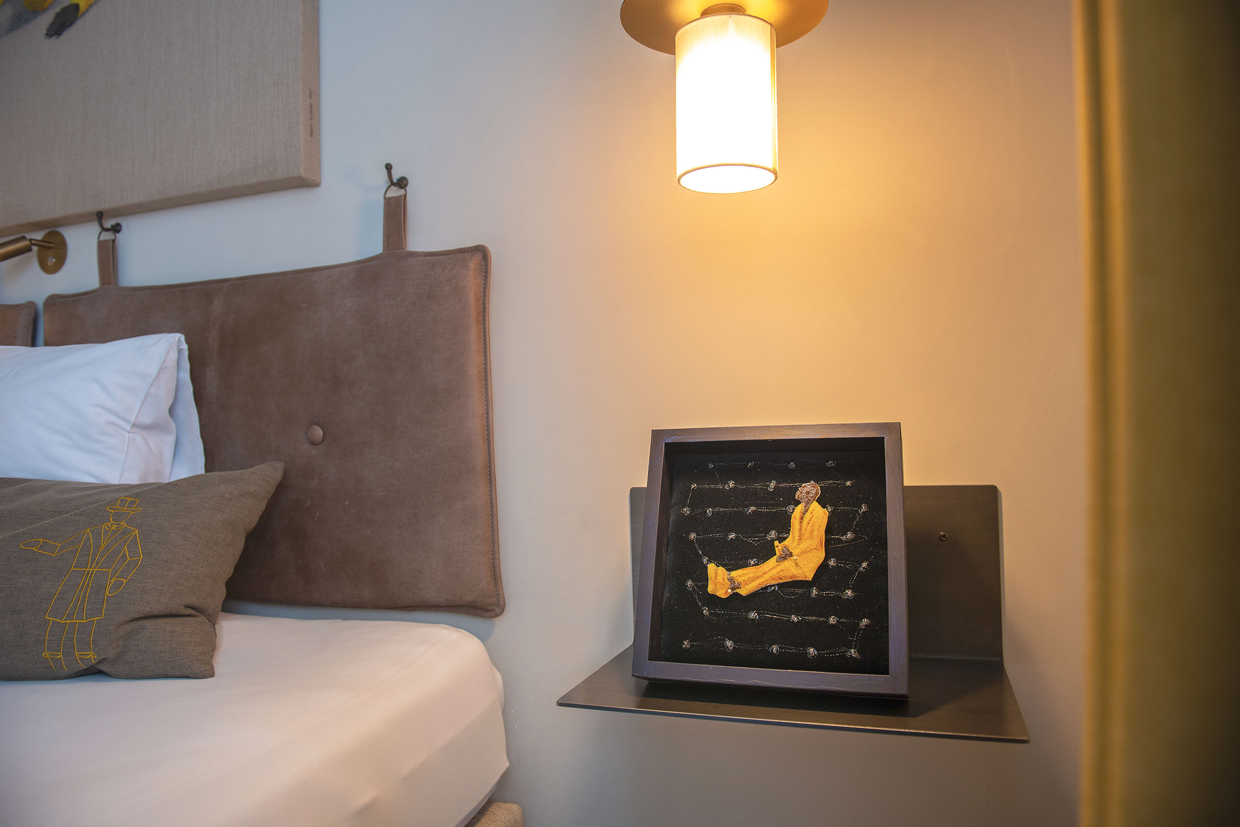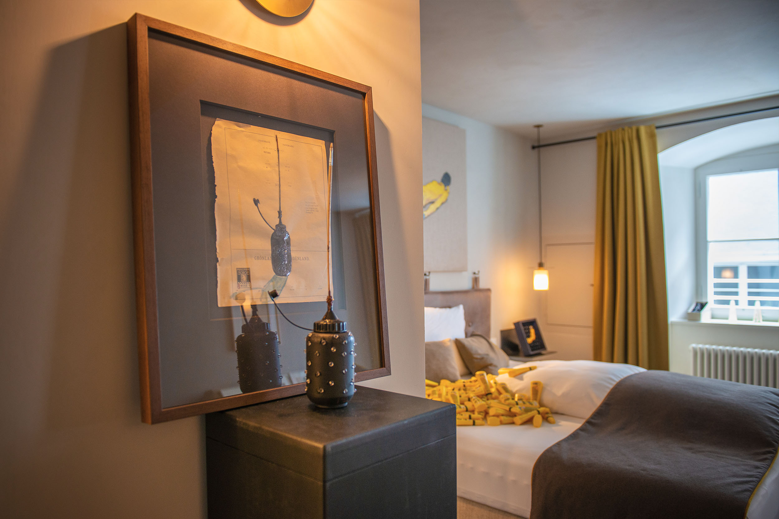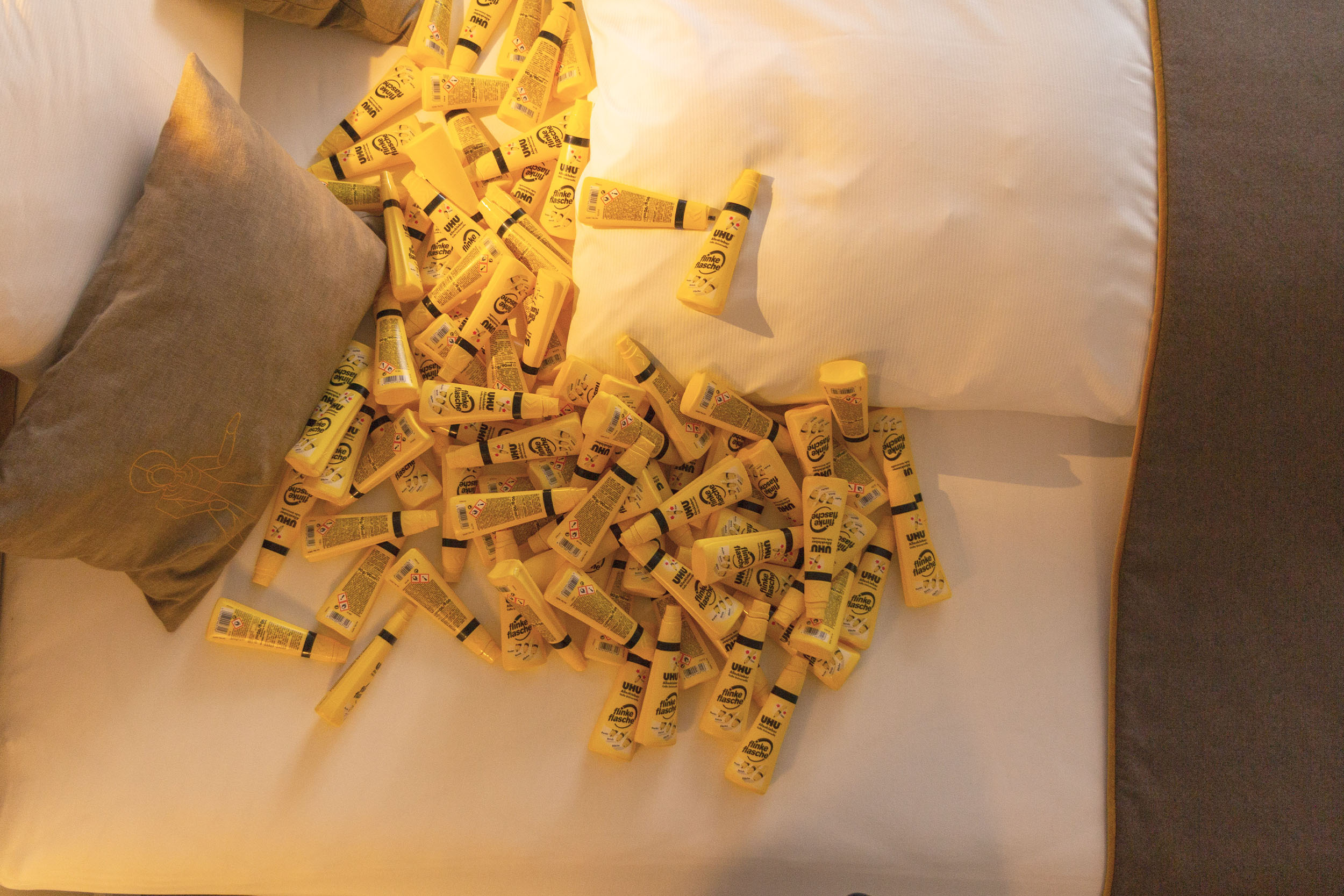 Anlässlich der Ausstellung Spitzenbegegnungen im Hotel das TSCHOFEN in Bludenz durfte Marco Spitzar das Zimmer Werdenberg bespielen. Ein intimer Ausstellungsraum, der mit Bett- und Schlafgeschichten ideal zur ganz eigenen Welt der Verklebung von Spitzar passt.