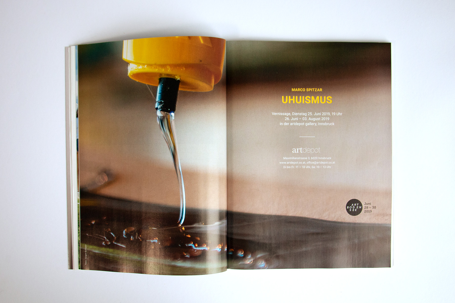Marco Spitzar will verwirren. Er geht nicht konform. Er sucht das andere. In diesem Anderssein liegt auch etwas Wildes. Und im Wilden liegt eine große Poesie. Mit UHU schafft er aber auch einen neuen Durchblick auf das Werk. Es ist wie eine Aufforderung, in die Tiefe einzutauchen. Eine Tiefe, die sich nicht leicht erschließt. Eine Tiefe, die vielschichtig ist. Je nachdem, wie sehr man sich auf das Werk einlässt. Wie tief man eintauchen will. Wie risikofreudig man ist.