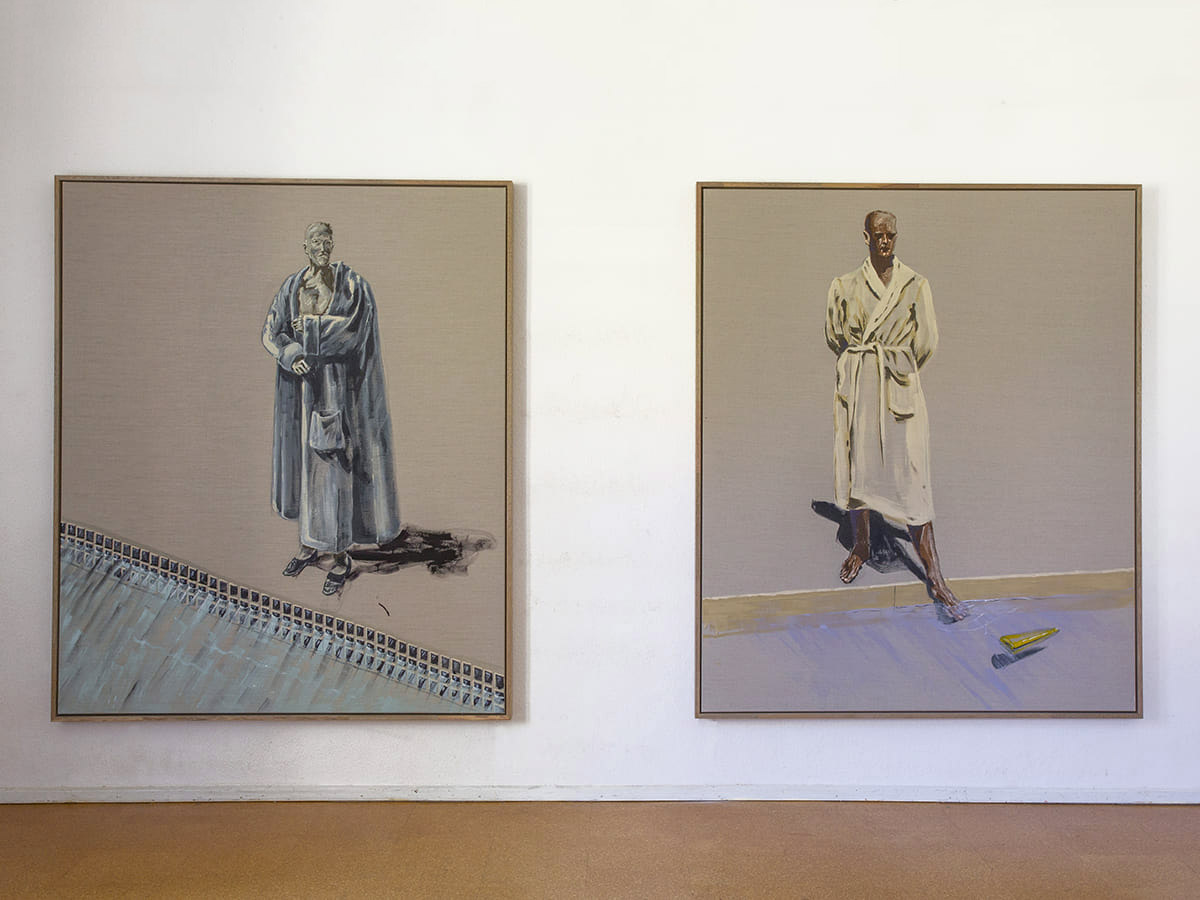 Der eine überzieht die Welt mit UHU flüssig aus der Flinken Flasche, verdickt, schließt ein, lässt alles wie erstarrt unter einer Luftbläschen-Oberfläche historisch anmutend zurück. Der andere seziert Geistesblitze und Sinnlichkeit in einem Farbenrausch, der aus einer anderen Zeit gefallen scheint.