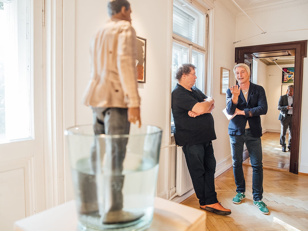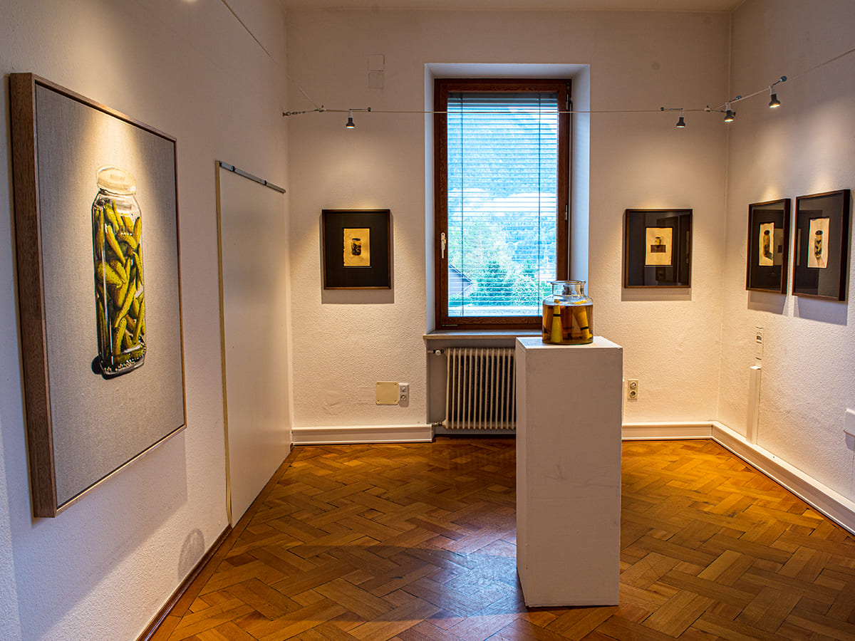 Kurator Peter Niedermair führte persönlich durch die Räumlichkeiten der Villa und zeigte wie interessant die Auseinandersetzung mit den ganz spezifischen Themen der Künstler sein kann. Ob Gurkengläser, flinke Flasche oder Fußbäder – nichts ist so faszinierend wie die Hintergründe dazu.