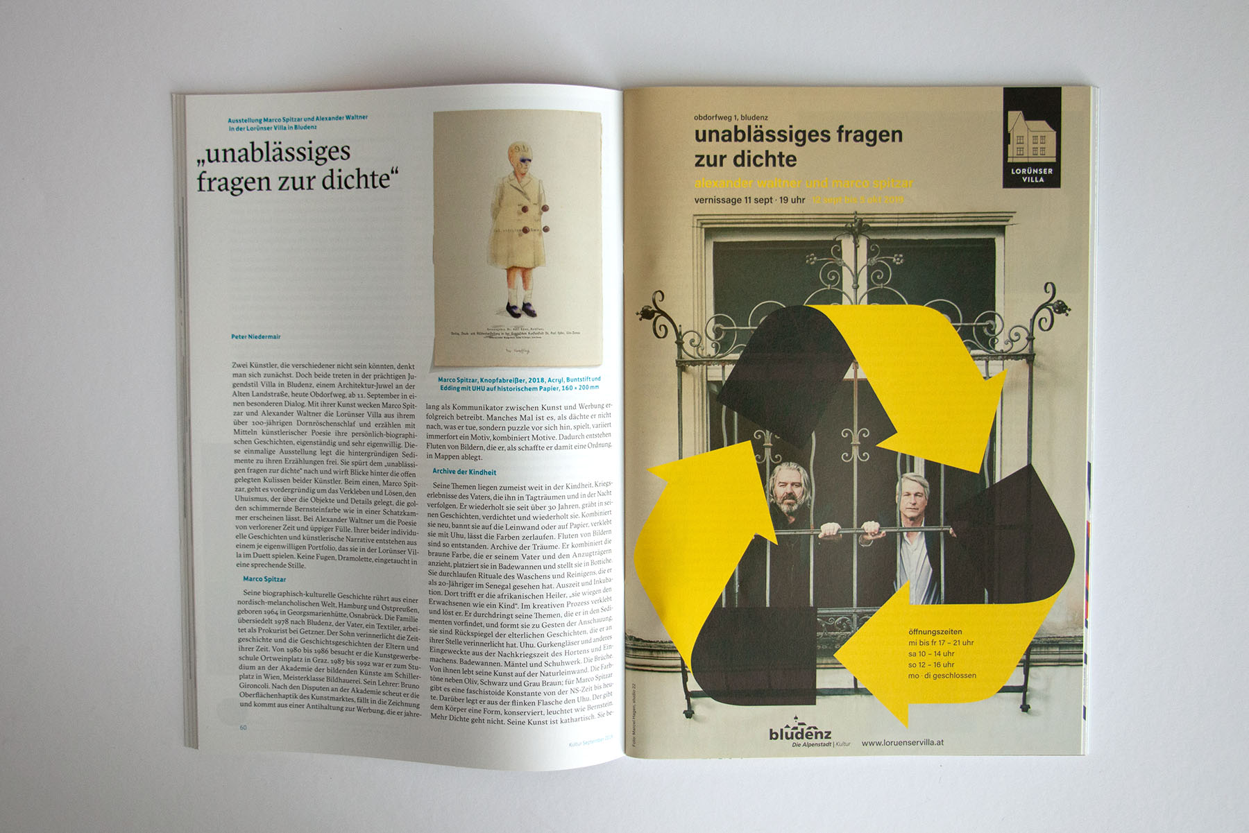 Mit ihrer Kunst bespielen Marco Spitzar und Alexander Waltner die Räumlichkeiten der Lorünser Villa und erzählen mit den Mitteln künstlerischer Poesie ihre persönliche Geschichten. Genuin. Eigenständig. Eigenwillig.
