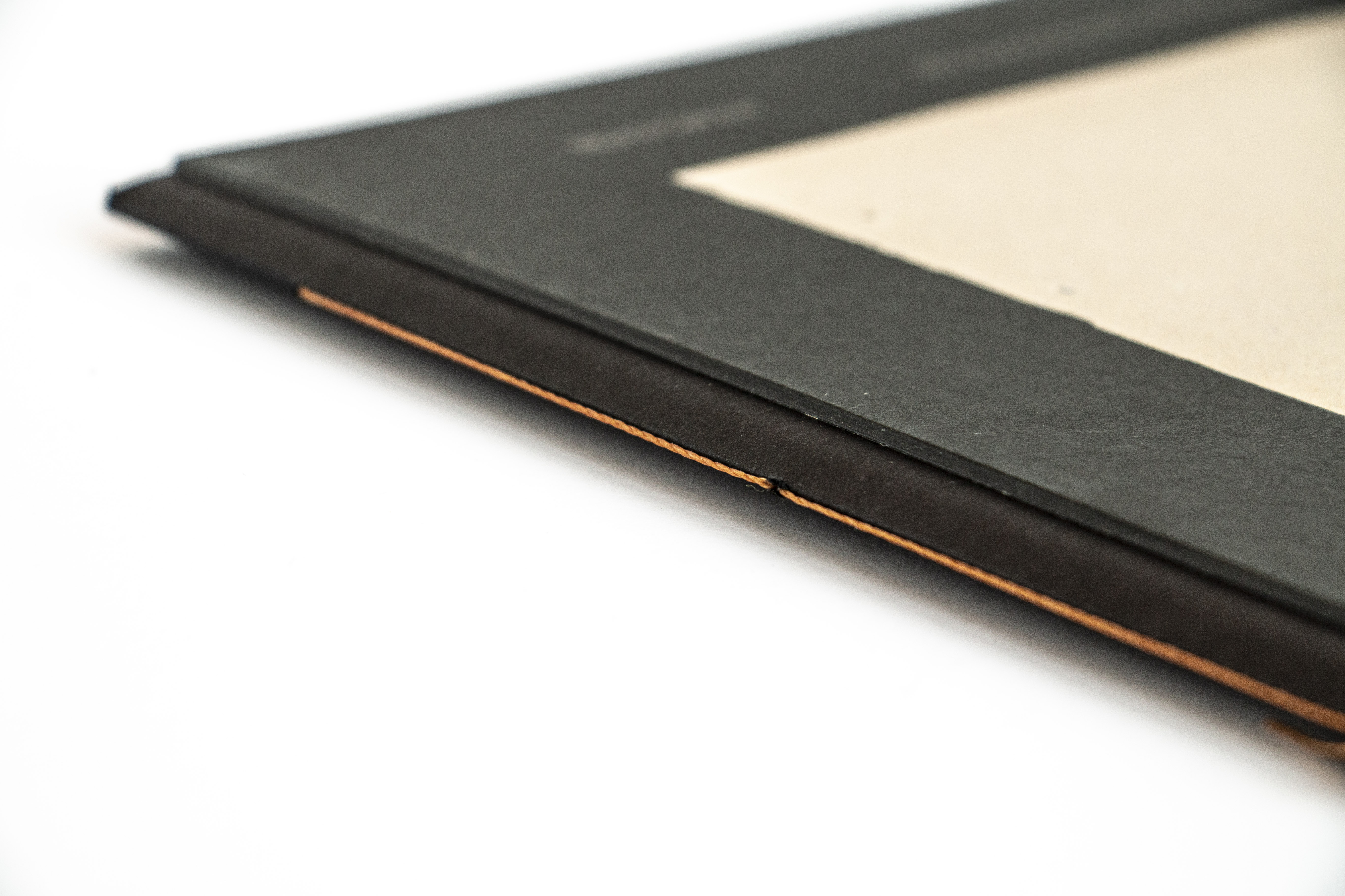 Umschlag/Papier: Favini Sumo Black, 1,5 mm, Peragraphica Classic Rough 150 g