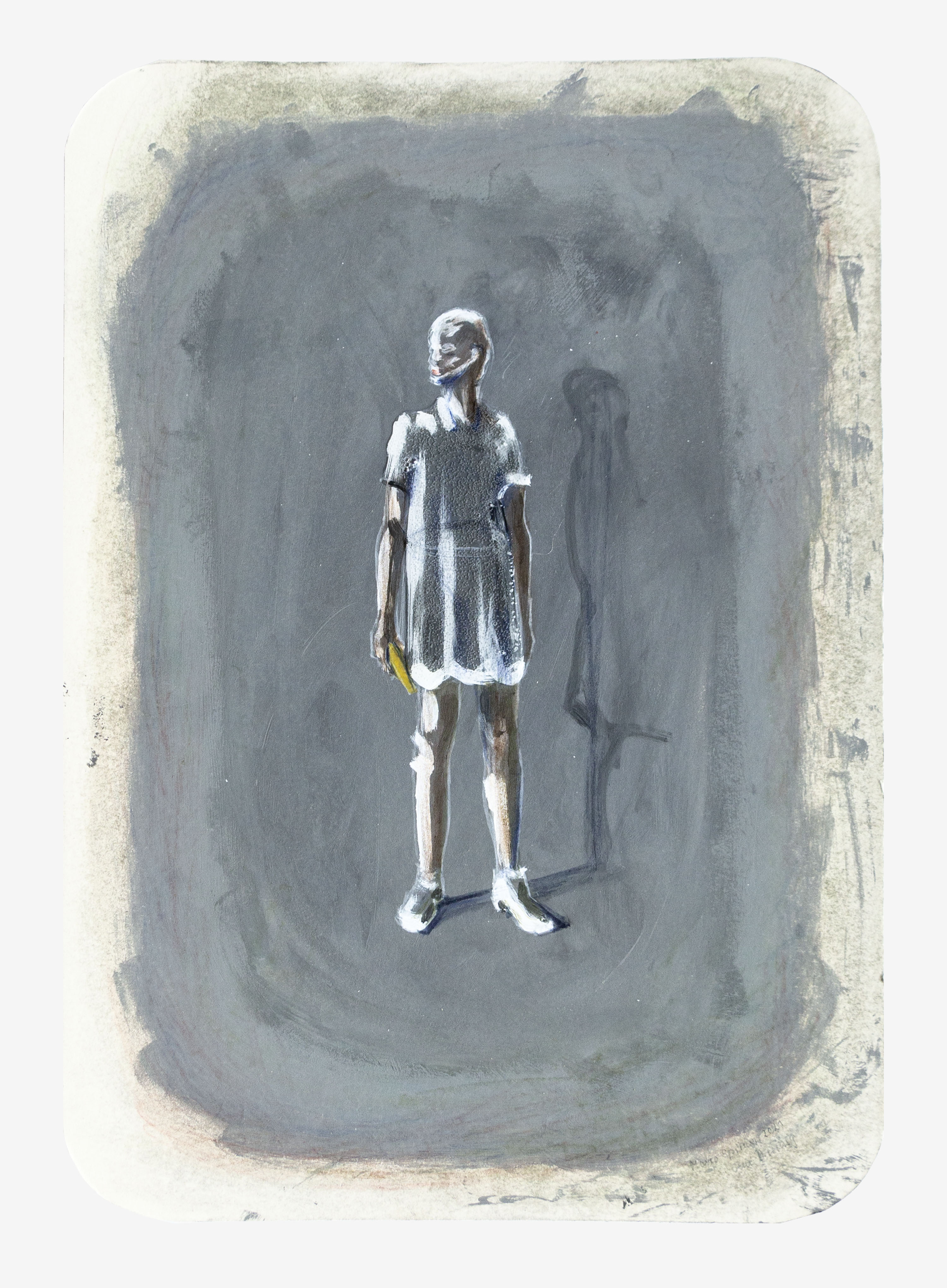 Material: Acryl und Buntstift mit UHU auf Schuhschachteldeckel