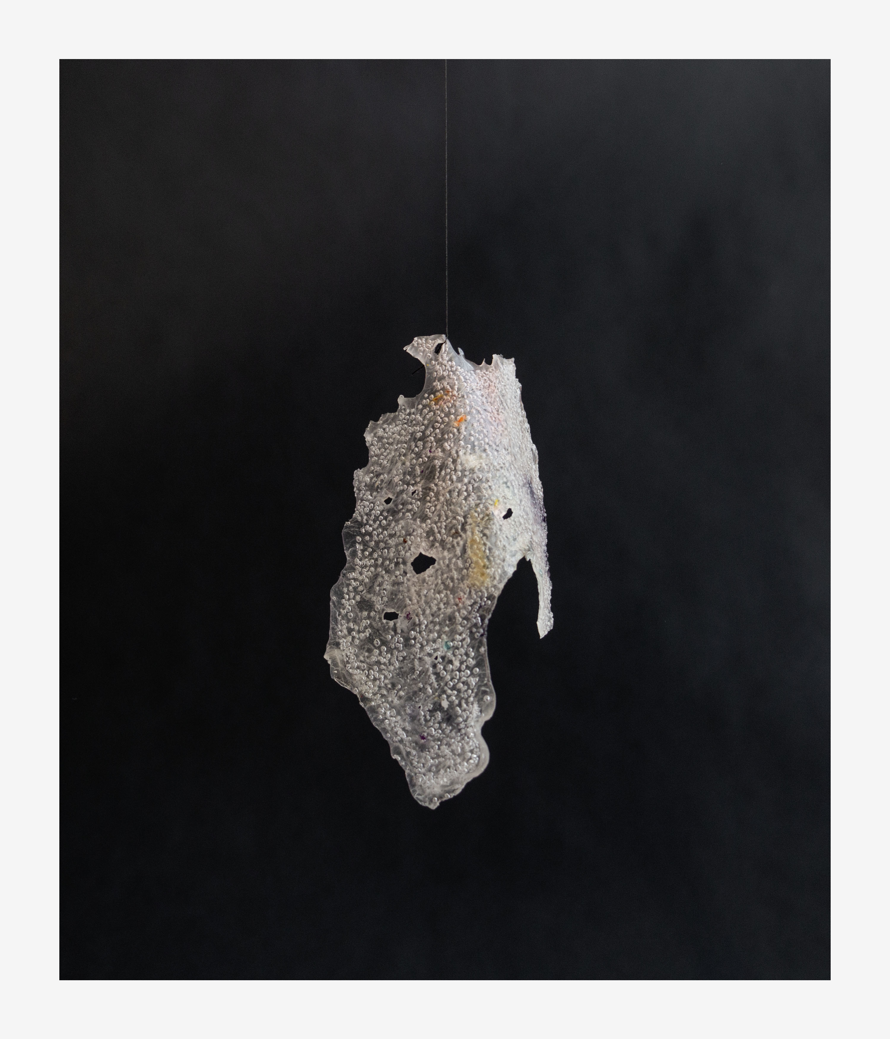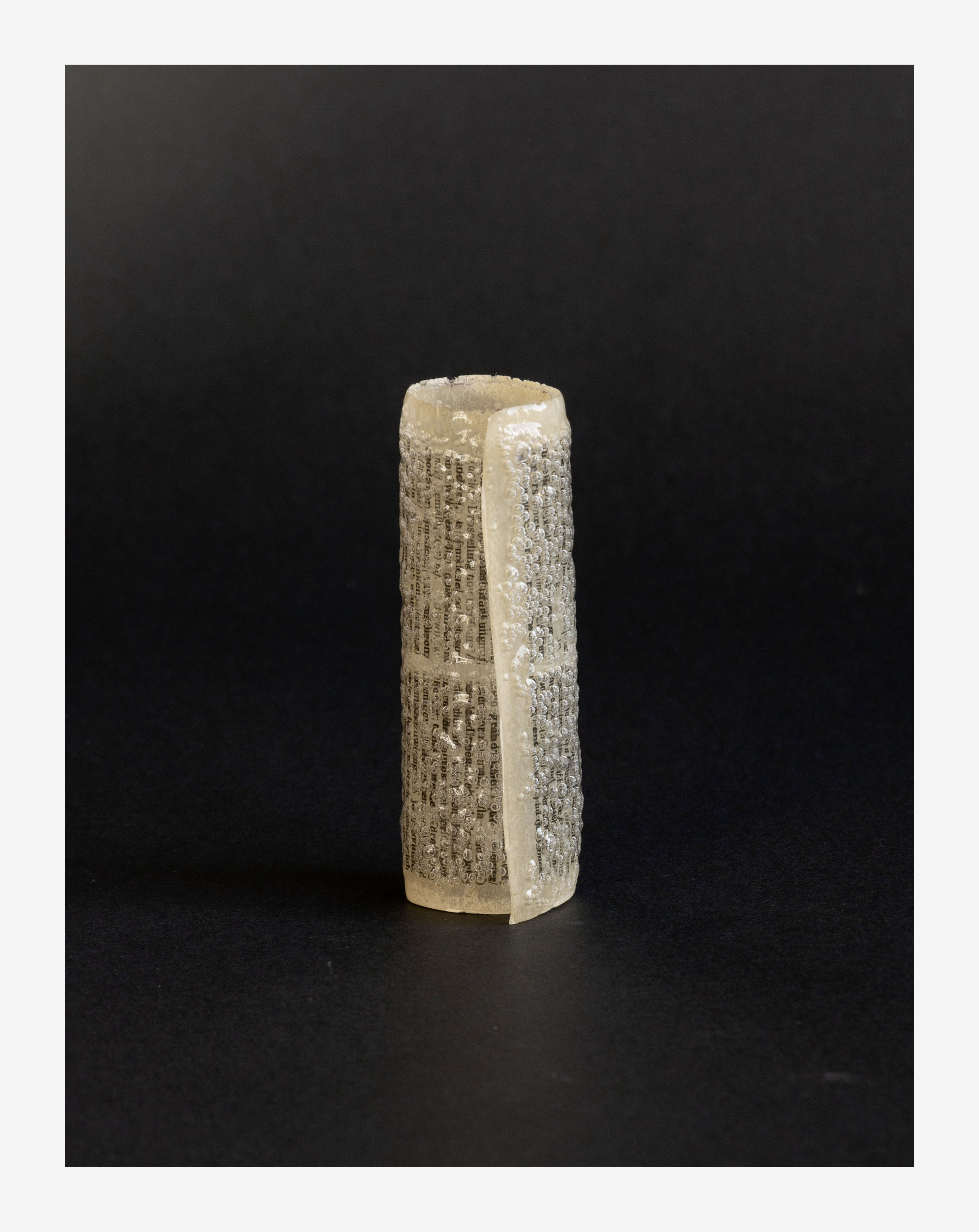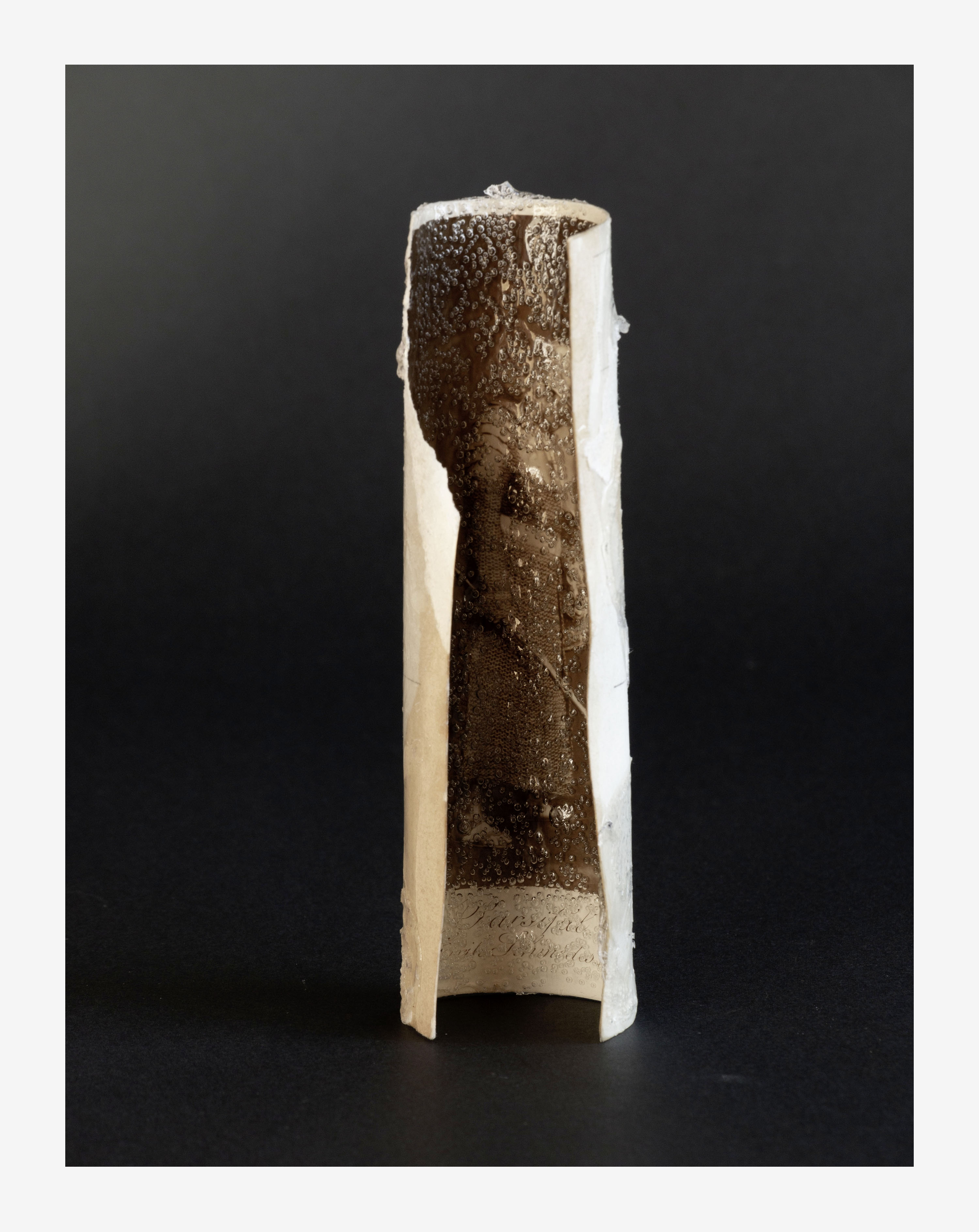 Die Stabilisierung und Festigung des Trägermaterials mit herkömmlichen Kleber schafft vor allem auch durch den kleinen Maßstab eine physische Skulpturhaftigkeit, mit der uns Marco Spitzar in eine neu-dimensionierte, haptische Zwischenwelt entführt. Von Waldrändern zu Straßenrändern hin zu Schreibtischrändern.