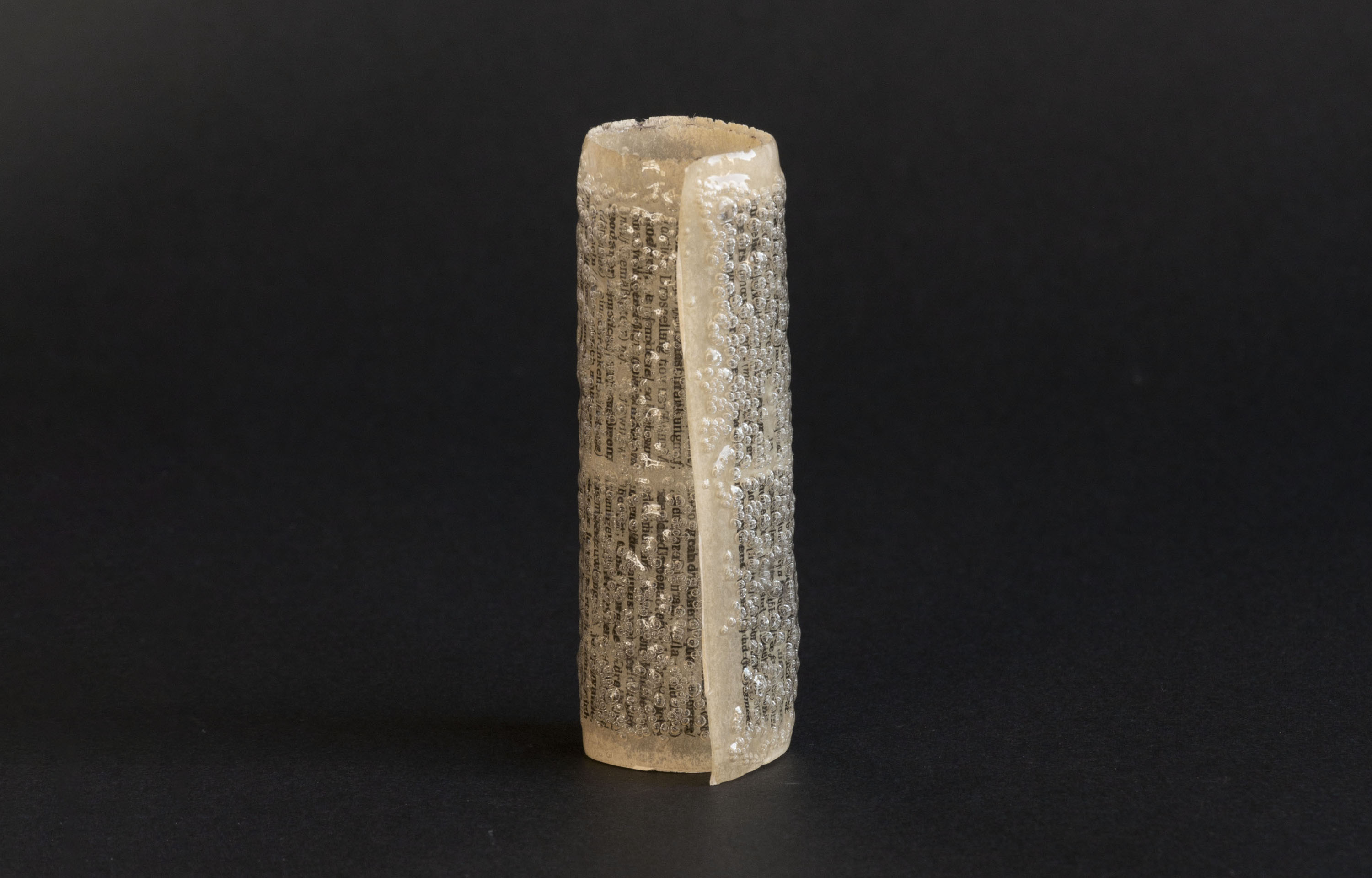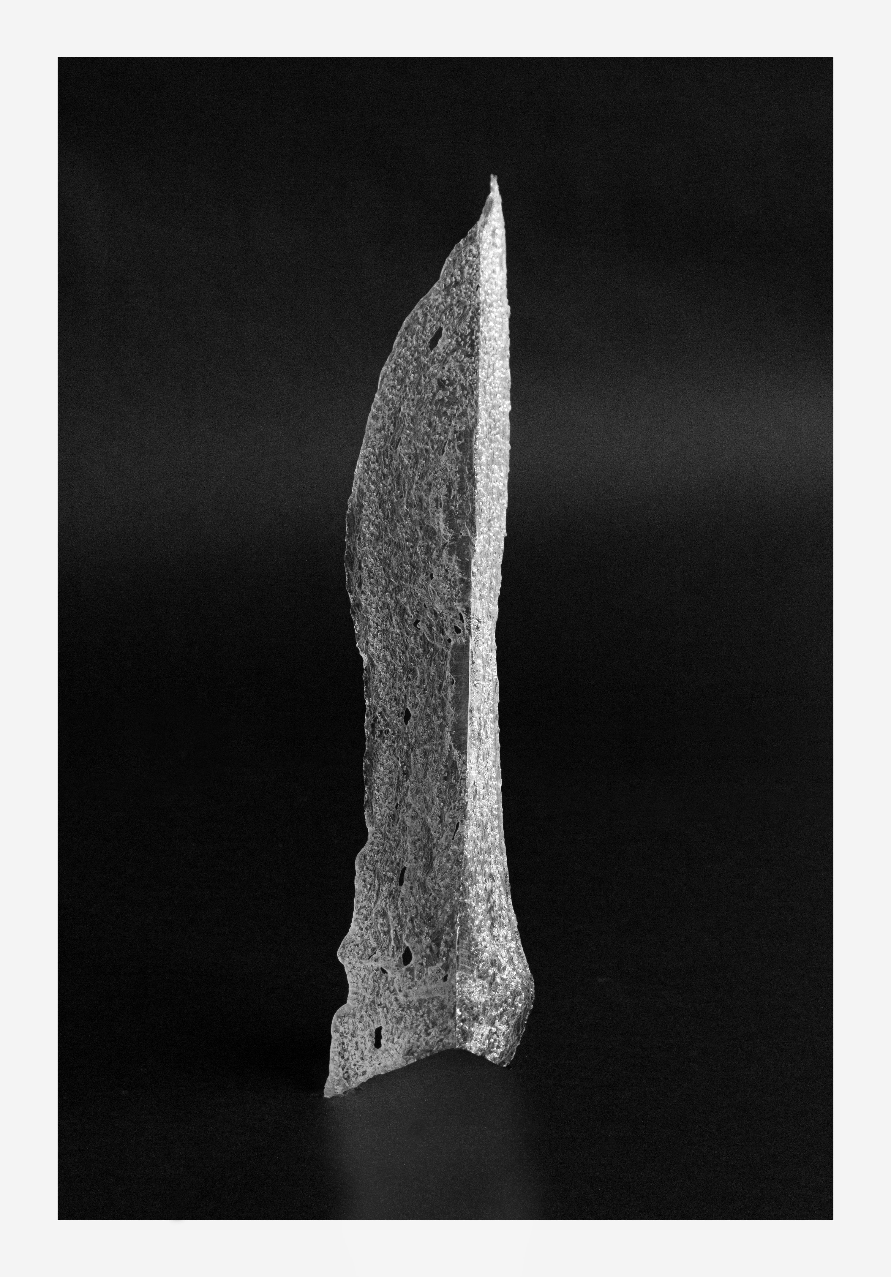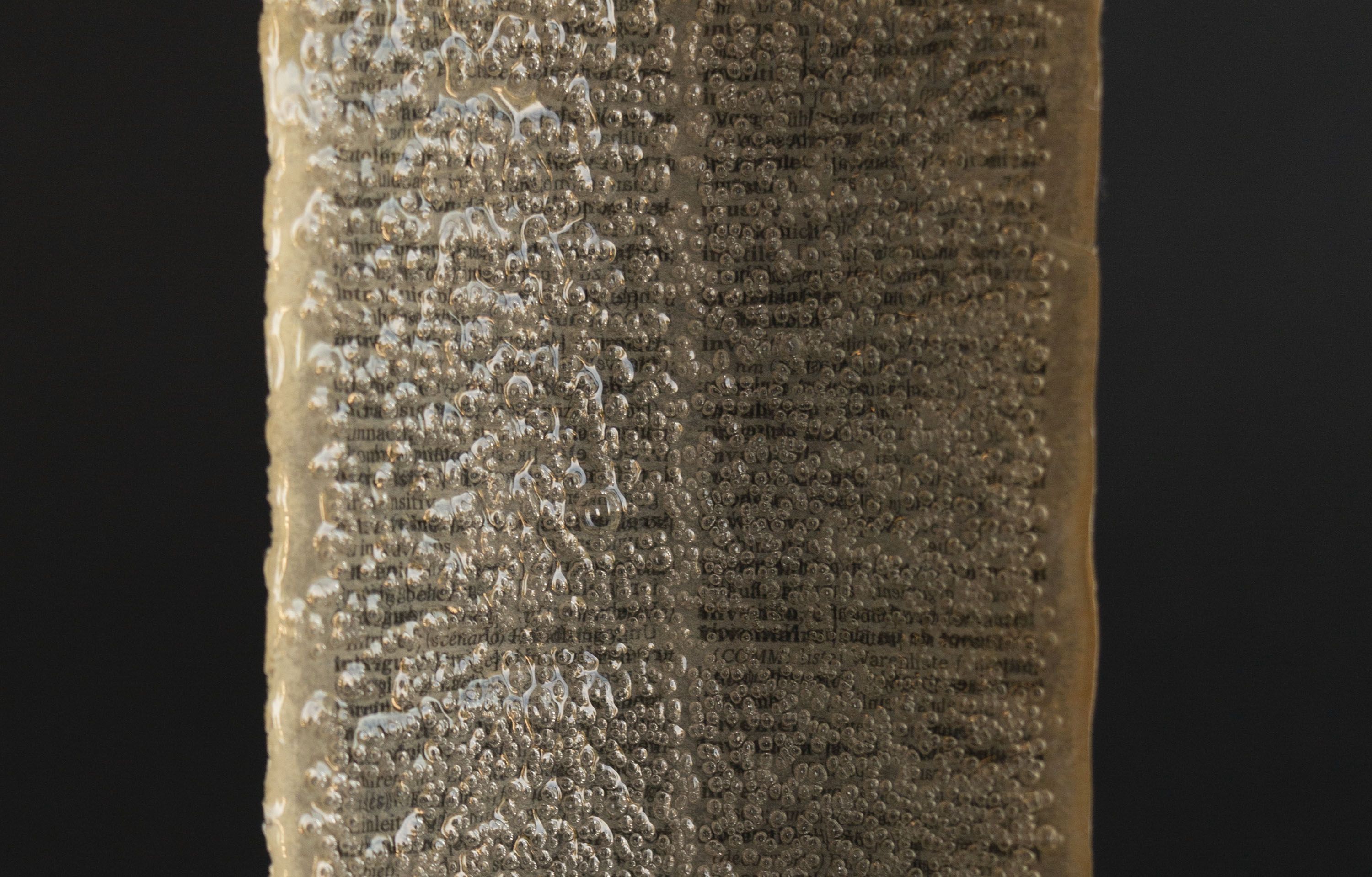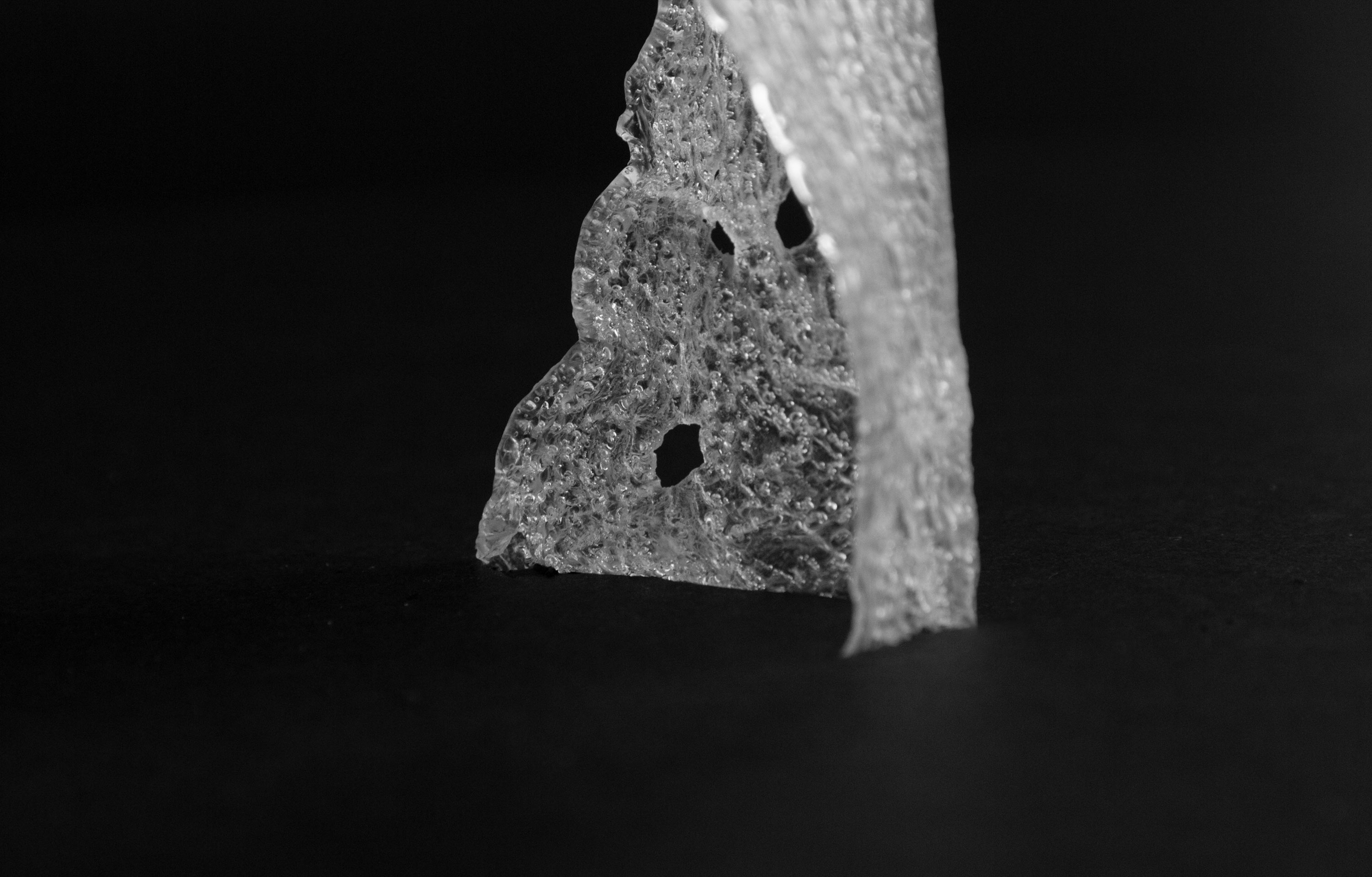 Die Stabilisierung und Festigung des Trägermaterials mit herkömmlichen Kleber schafft vor allem auch durch den kleinen Maßstab eine physische Skulpturhaftigkeit, mit der uns Marco Spitzar in eine neu-dimensionierte, haptische Zwischenwelt entführt. Von Waldrändern zu Straßenrändern hin zu Schreibtischrändern.