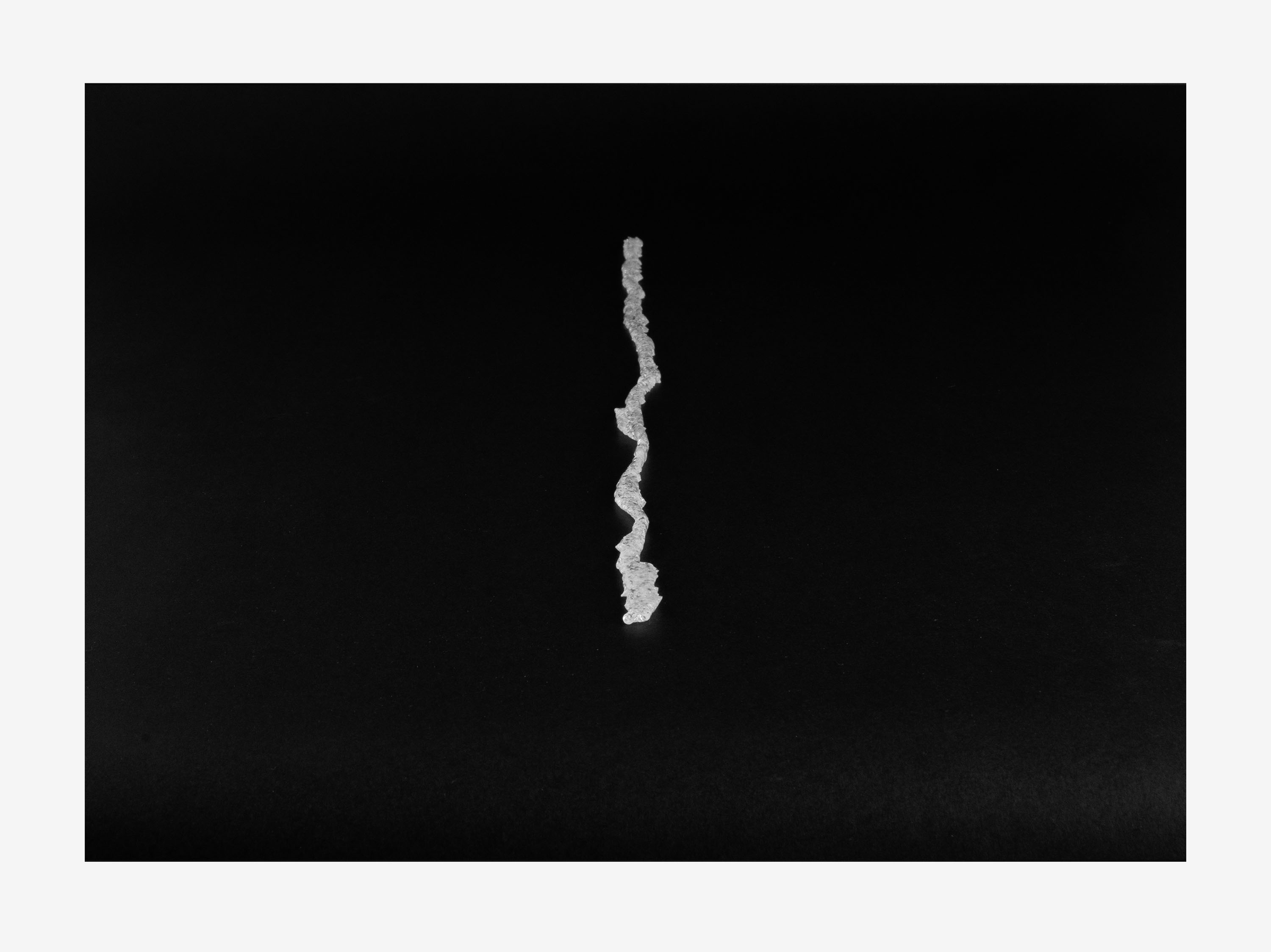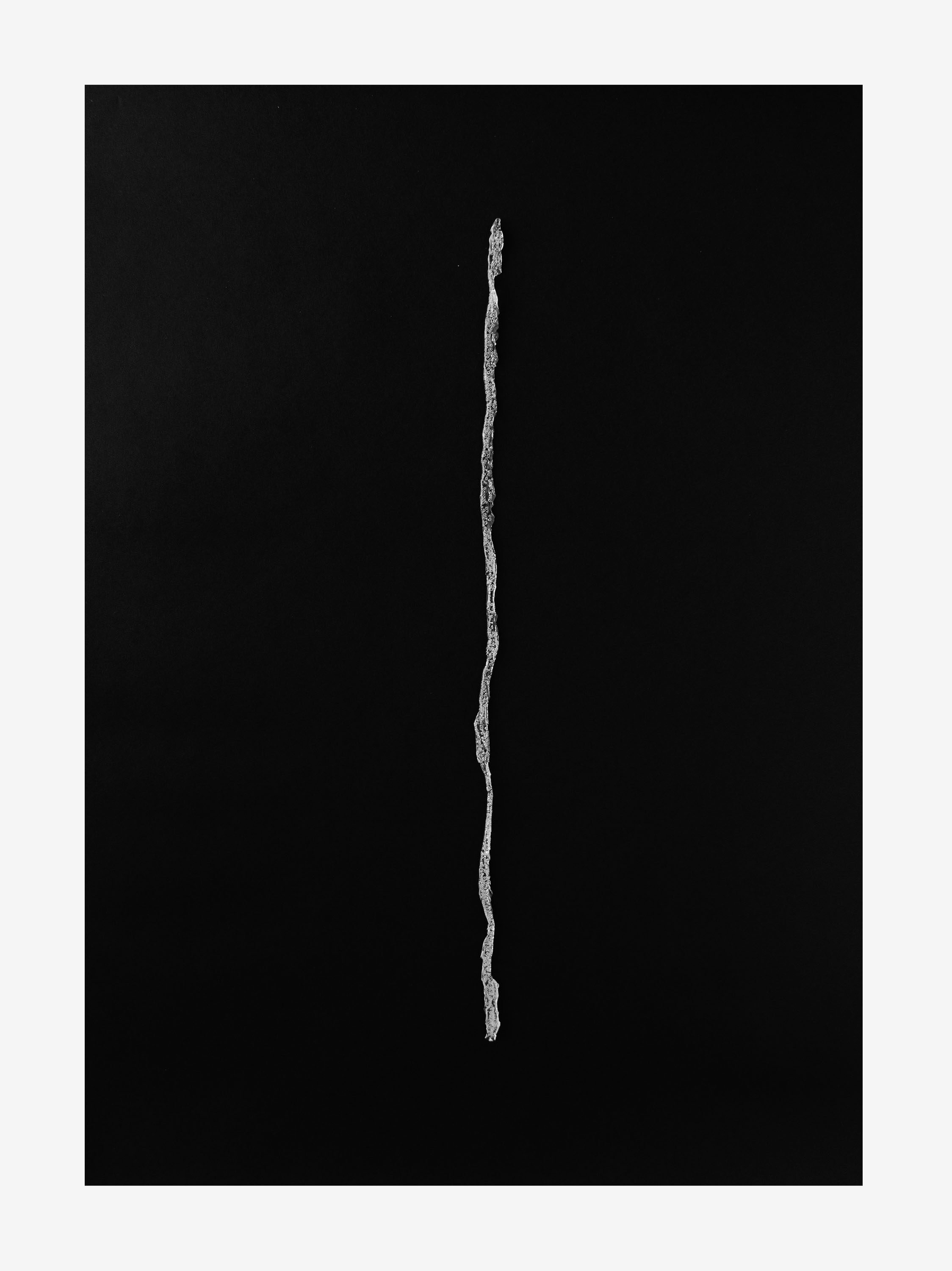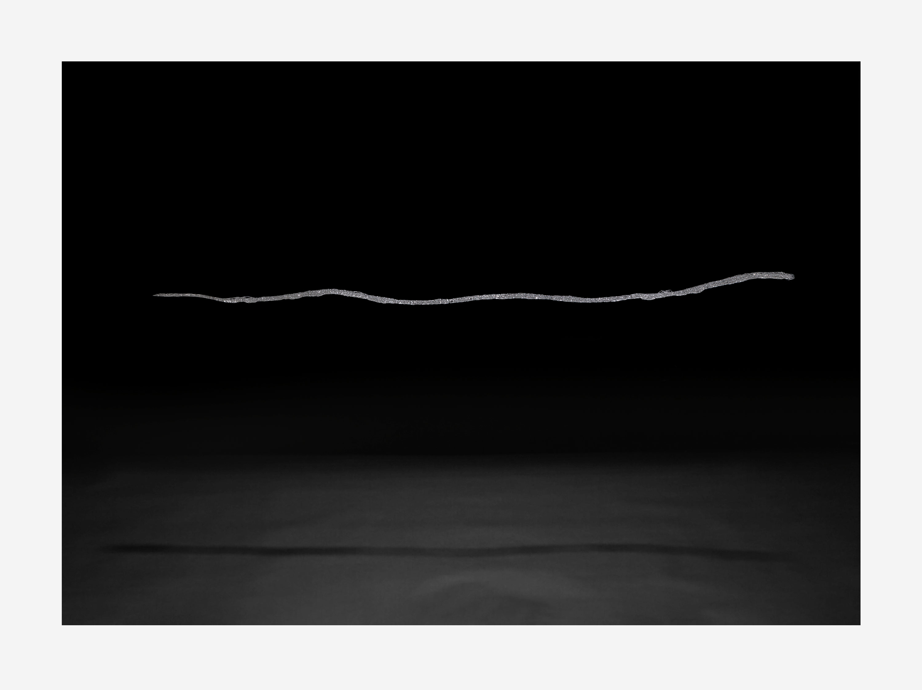 Eine scheinbar gerade Linie perspektivisch, von der Seite oder von oben zu betrachten schafft völlig neue Verhältnisse. Normale, gerade gezogene Bleistiftlinien waren es für Marco Spitzar noch nicht wert eigenständig als Fotomotiv bearbeitet zu werden. Die charaktervollen, durchs flüssige Auftragen, unregelmäßigen Klebelinien dagegen, hatten für ihn von Anfang an das Potenzial räumlich fotografisch festgehalten werden zu müssen. Die Blickwinkel schaffen eine eigene Welt und die Fotoarbeiten der Klebelinien sind völlig eigenständige Werke, die das originale Objekt nicht ersetzen kann. Die Welt von Peking aus betrachtet enthält andere Eindrücke und läßt Europa natürlich durch die Krümmung winzig erscheinen. Die geänderten Blickwinkel erzeugen völlig neue Gefühle für Raum und Zeit und bringen uns die Abstraktion der Linien, der Klebelinien näher.