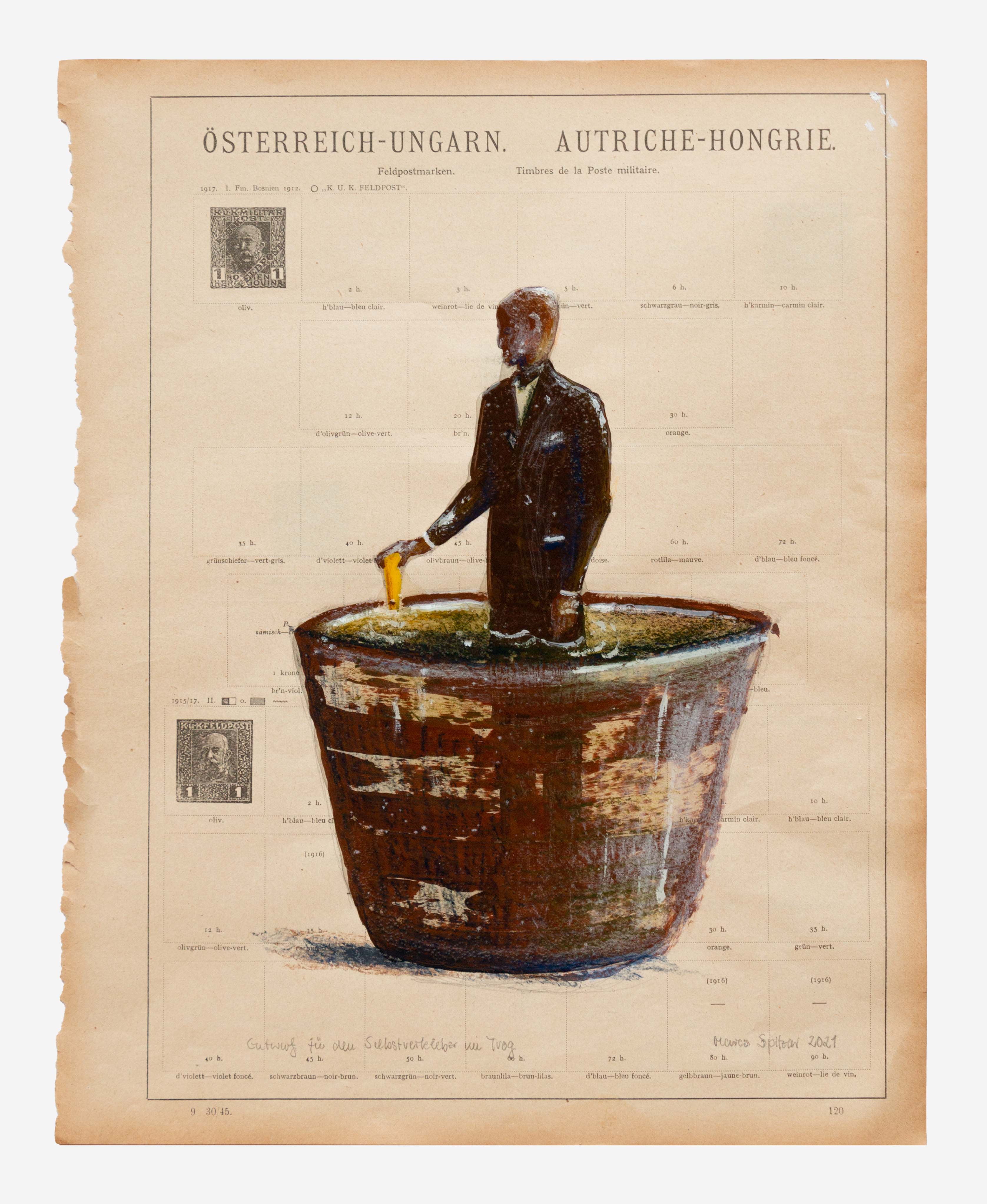 Die Reinigung als menschliches Bedürfnis ist ein Anspruch, der Spitzars Arbeiten immer begleitet. Die Initiation, das Verstehen, der innerliche menschliche Zwang dazu entstand beim Beobachten der Heiler in Westafrika im Senegal. Er beobachtete die Dosierung und die Medikation in den kleinen Holzwannen der Heiler, die ihre Patienten zu rituellen Waschungen anleiteten. Dabei ging es nicht um das Eintauchen des ganzen Körpers, sondern um das Schöpfen und Übergießen der menschlichen Hülle samt der Seele und der psychischen Zustände.