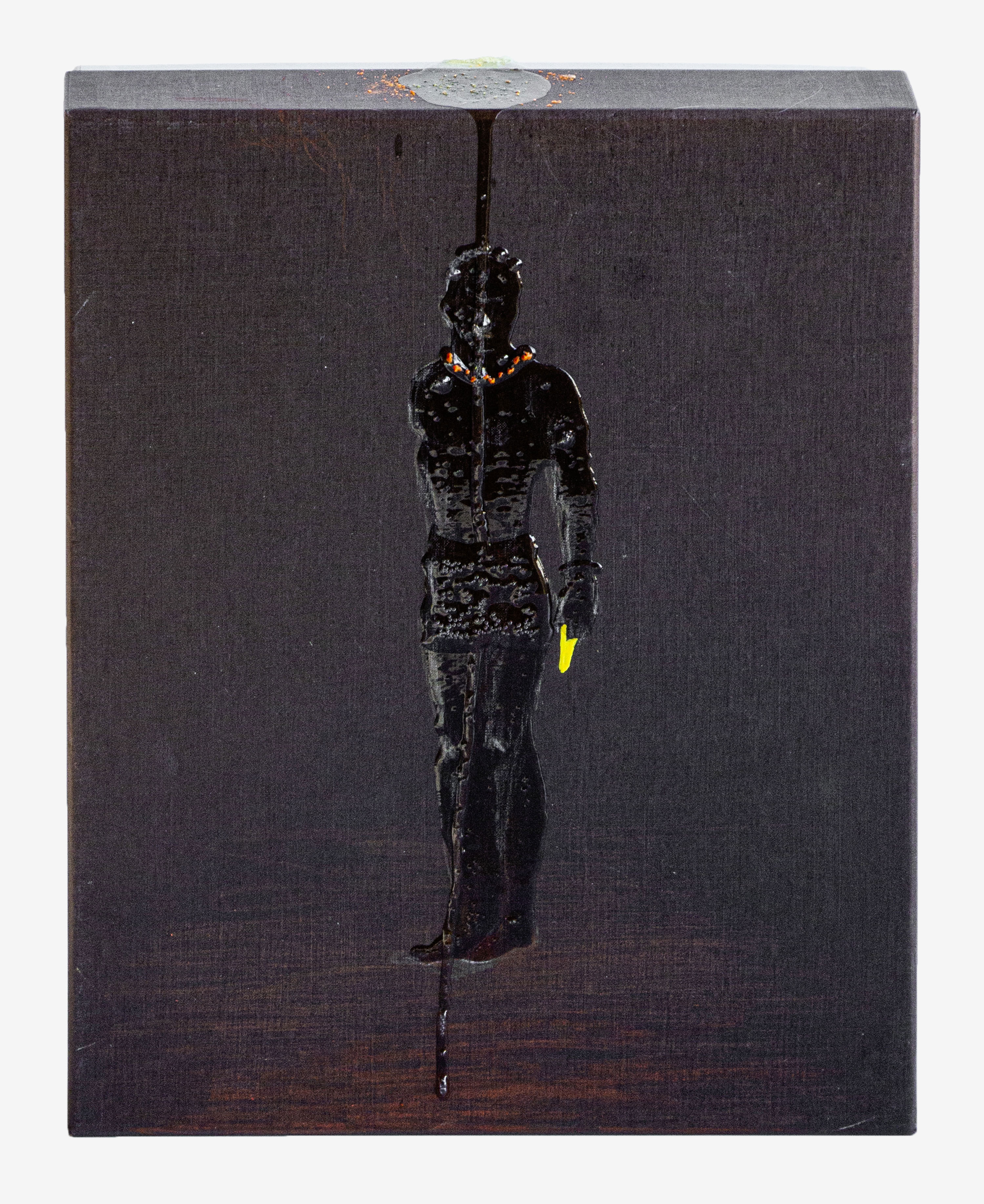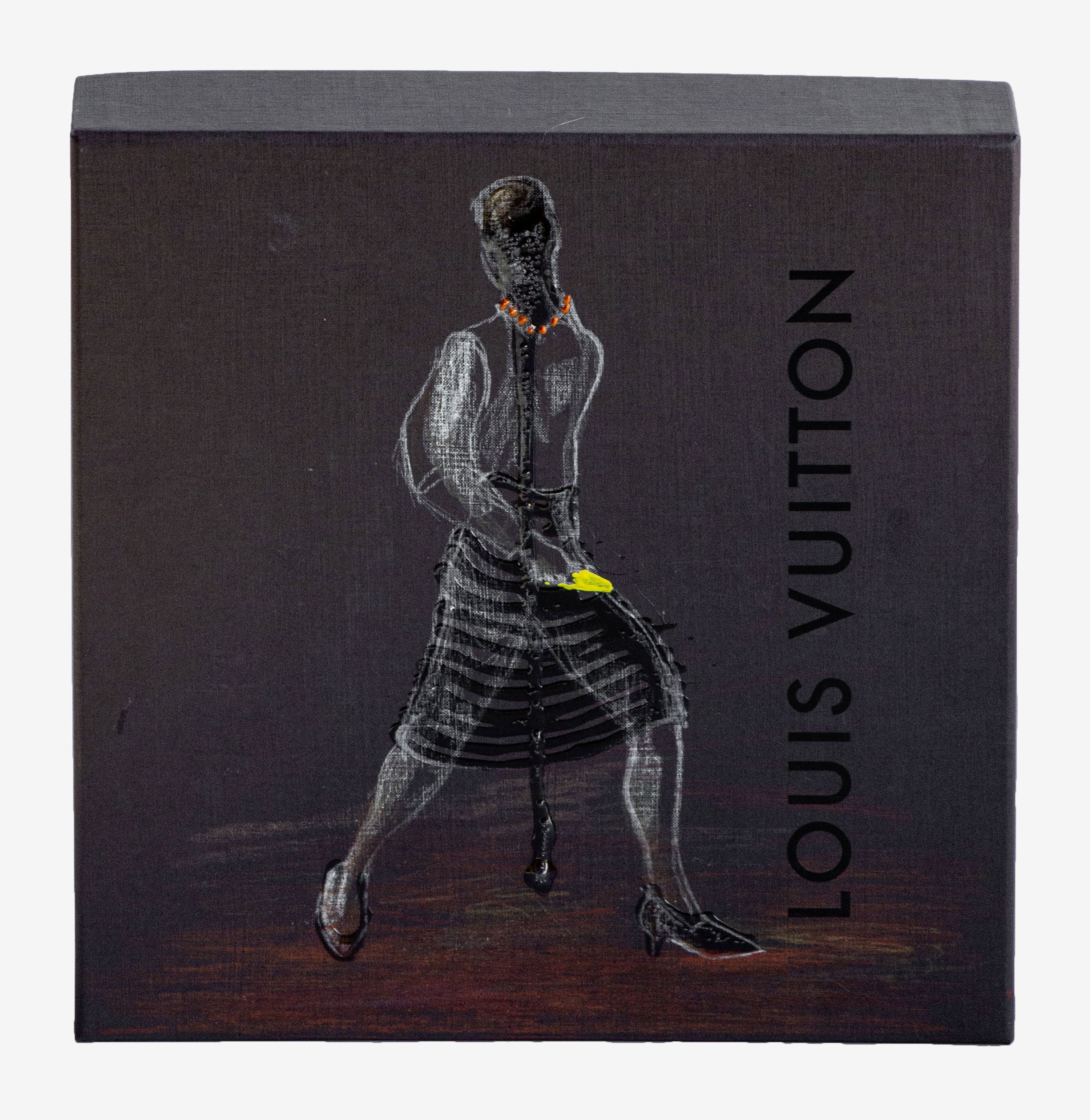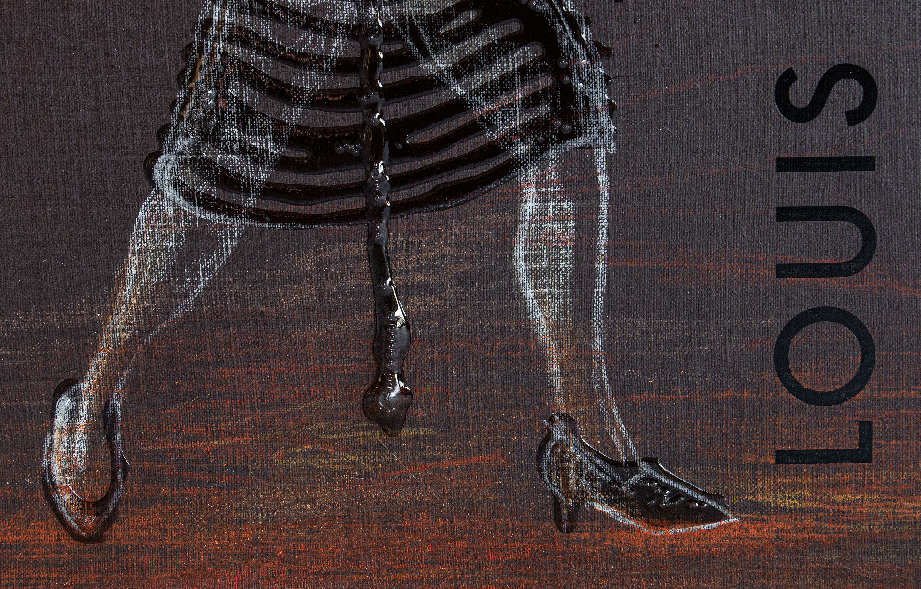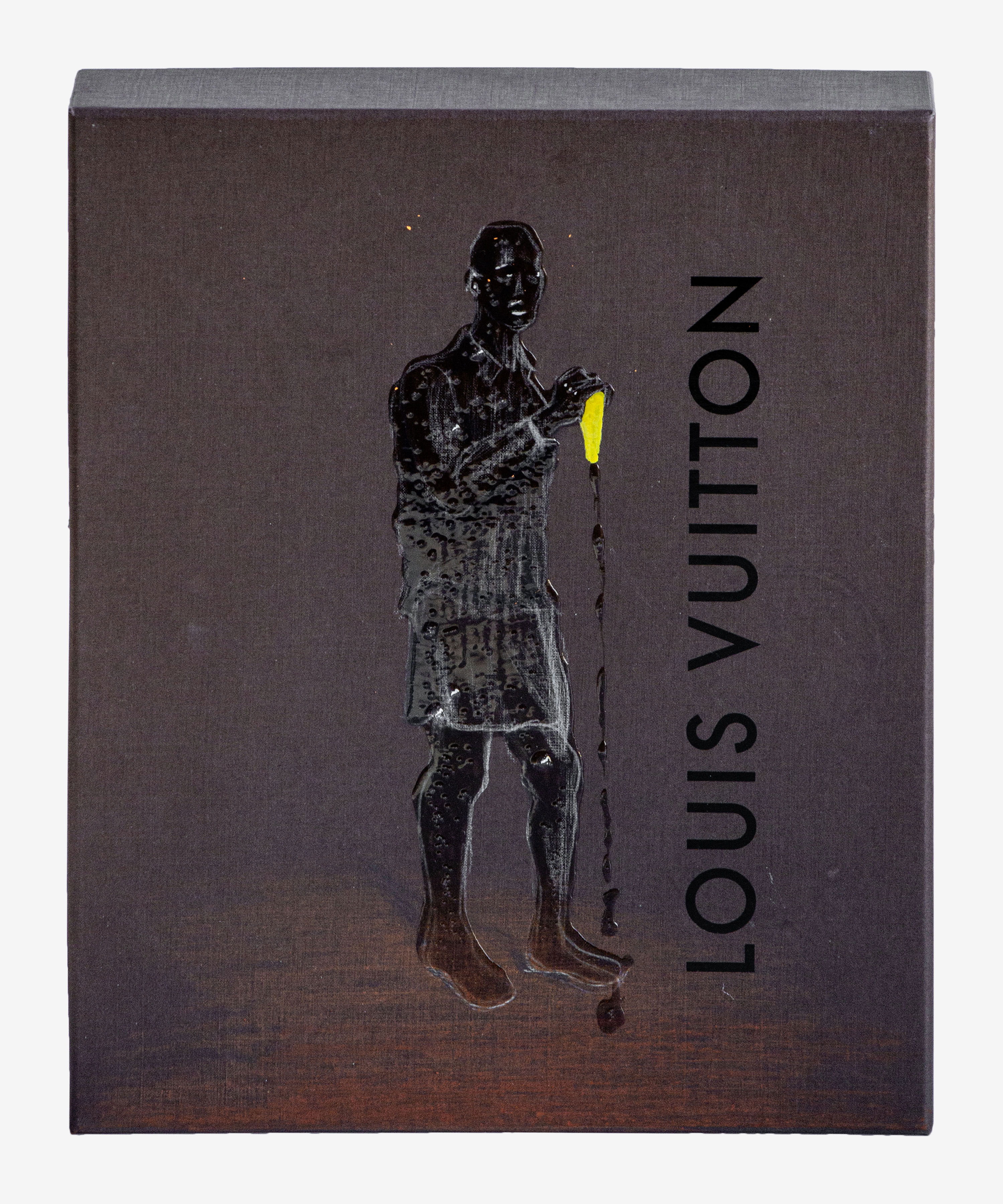Festkleben, Steckenbleiben oder das Kleben als Fest. Wieso nicht das Liebste, das man macht, als exklusiv, als Fest betrachten, das Zelebrieren mit feiner Kleidung unterstreichen. Marco Spitzar passiert es oft in seinen wertvollsten Sakkos im Atelier zu sein und mit Kleber zu kleckern. Ein Selbstverständnis, das in Konzentration mündet. Er hat sich schon lange davon verabschiedet mit drittklassigen Fussballspielern mitzuhalten und den LV Monogram- Stücken hinterher zu jagen. Aber es hat eine Zeit gegeben, da wollte er dabei sein, zumindest mit kleinen Accessoires. Die Schachteln aus dieser Zeit fokussieren ohne viel Aufwand, die Gegensätze mit denen wir leben. Das dunkelbraune, das elegante Verkleben, mit den Leiden und Verstimmungen unseres Lebens. Mode ist mehr als Begehren und Spiegel, sie ist so präsent, dass sie alle Herausforderungen unserer Zeit mit einbezieht, ob sie will oder nicht.