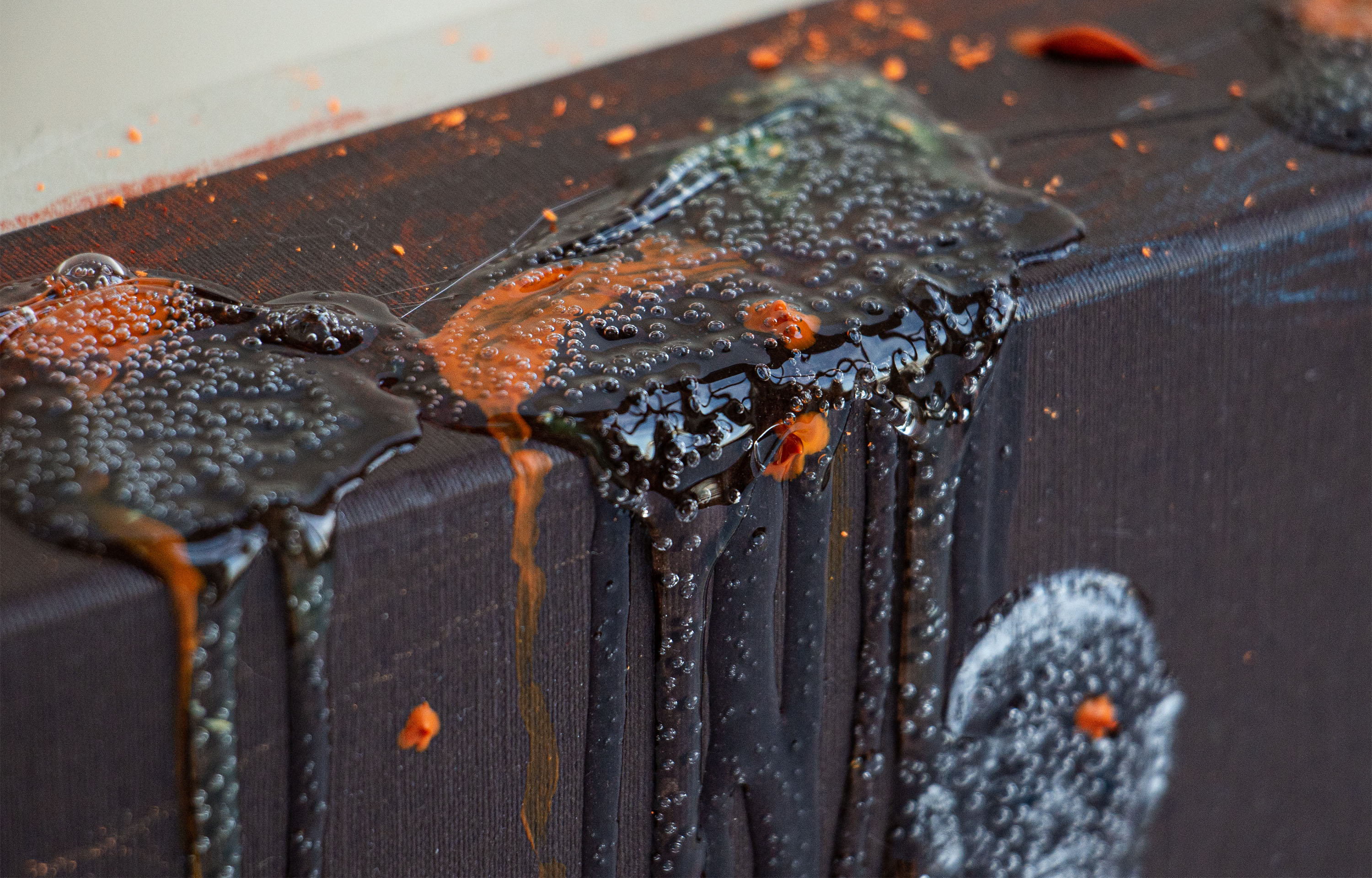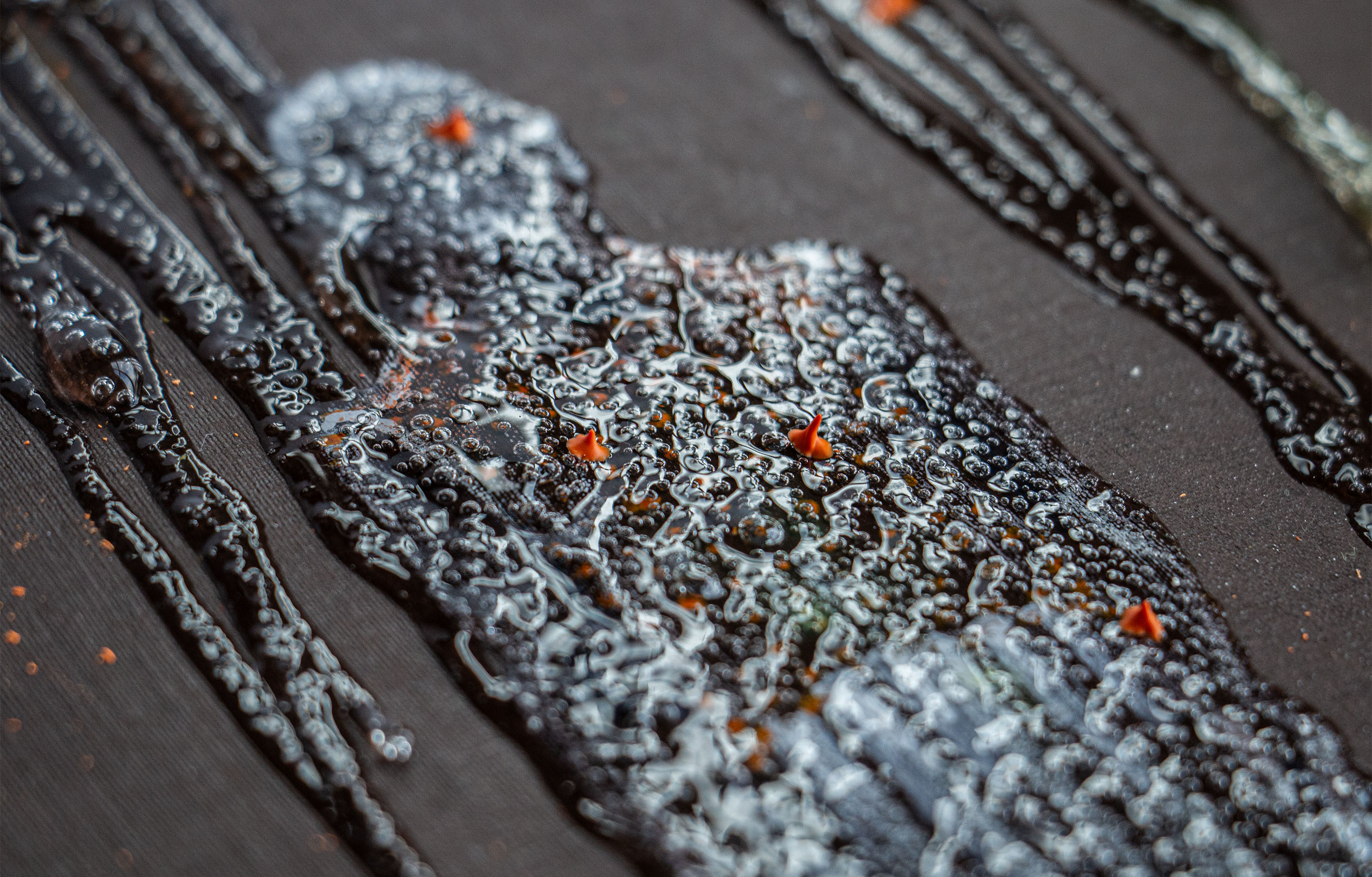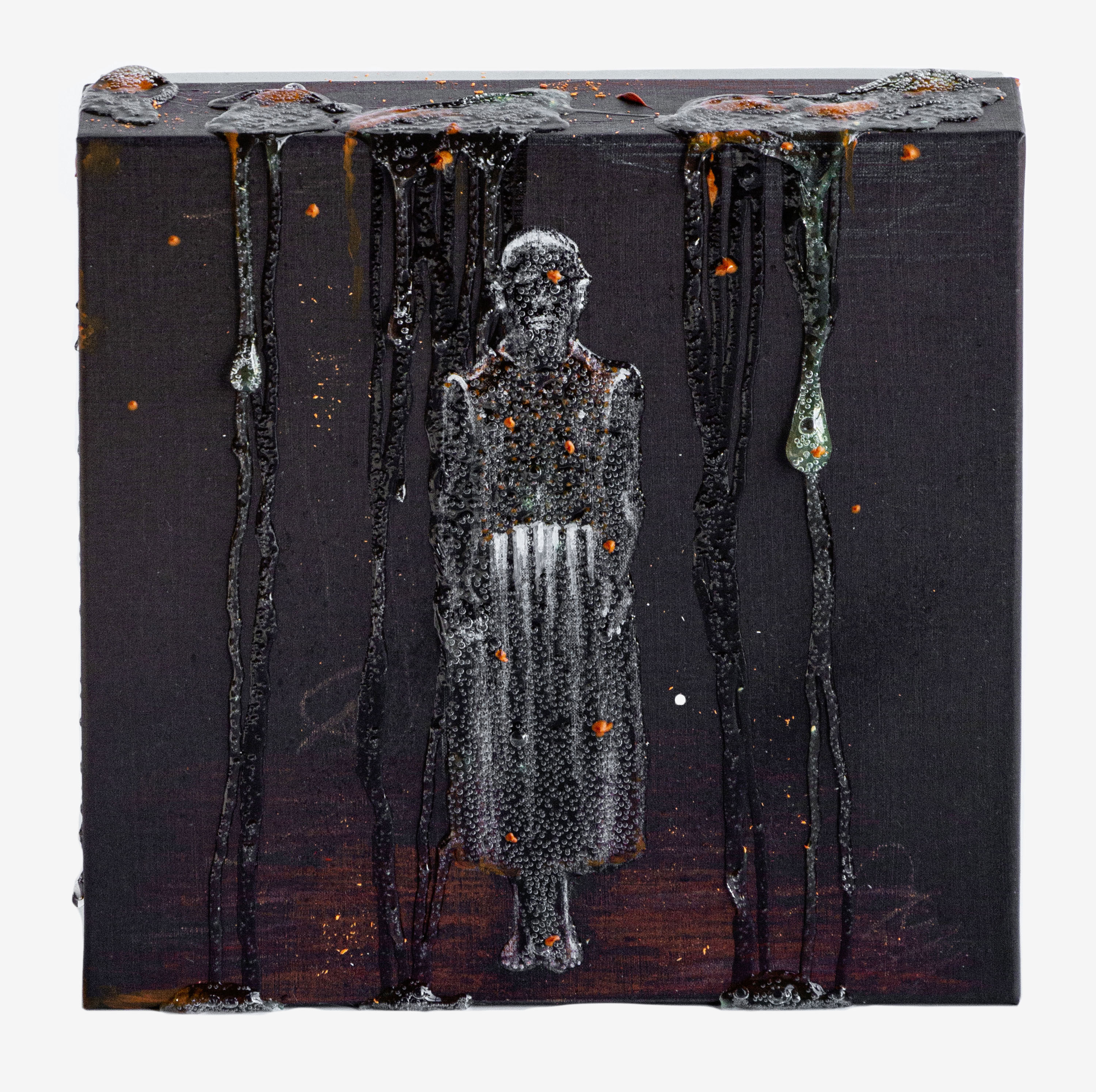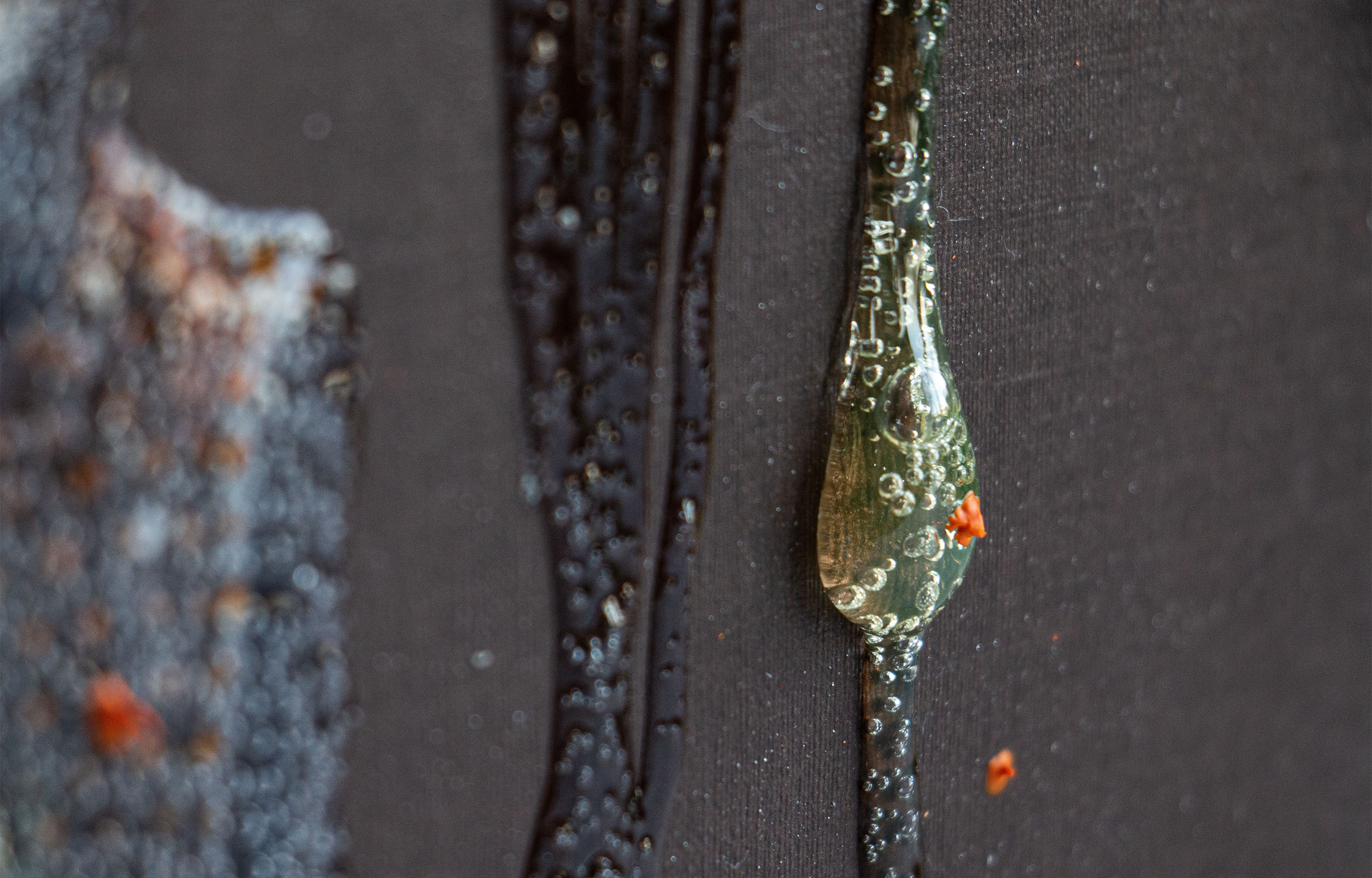 Festkleben, Steckenbleiben oder das Kleben als Fest. Wieso nicht das Liebste, das man macht, als exklusiv, als Fest betrachten, das Zelebrieren mit feiner Kleidung unterstreichen. Marco Spitzar passiert es oft in seinen wertvollsten Sakkos im Atelier zu sein und mit Kleber zu kleckern. Ein Selbstverständnis, das in Konzentration mündet. Er hat sich schon lange davon verabschiedet mit drittklassigen Fussballspielern mitzuhalten und den LV Monogram- Stücken hinterher zu jagen. Aber es hat eine Zeit gegeben, da wollte er dabei sein, zumindest mit kleinen Accessoires. Die Schachteln aus dieser Zeit fokussieren ohne viel Aufwand, die Gegensätze mit denen wir leben. Das dunkelbraune, das elegante Verkleben, mit den Leiden und Verstimmungen unseres Lebens. Mode ist mehr als Begehren und Spiegel, sie ist so präsent, dass sie alle Herausforderungen unserer Zeit mit einbezieht, ob sie will oder nicht.