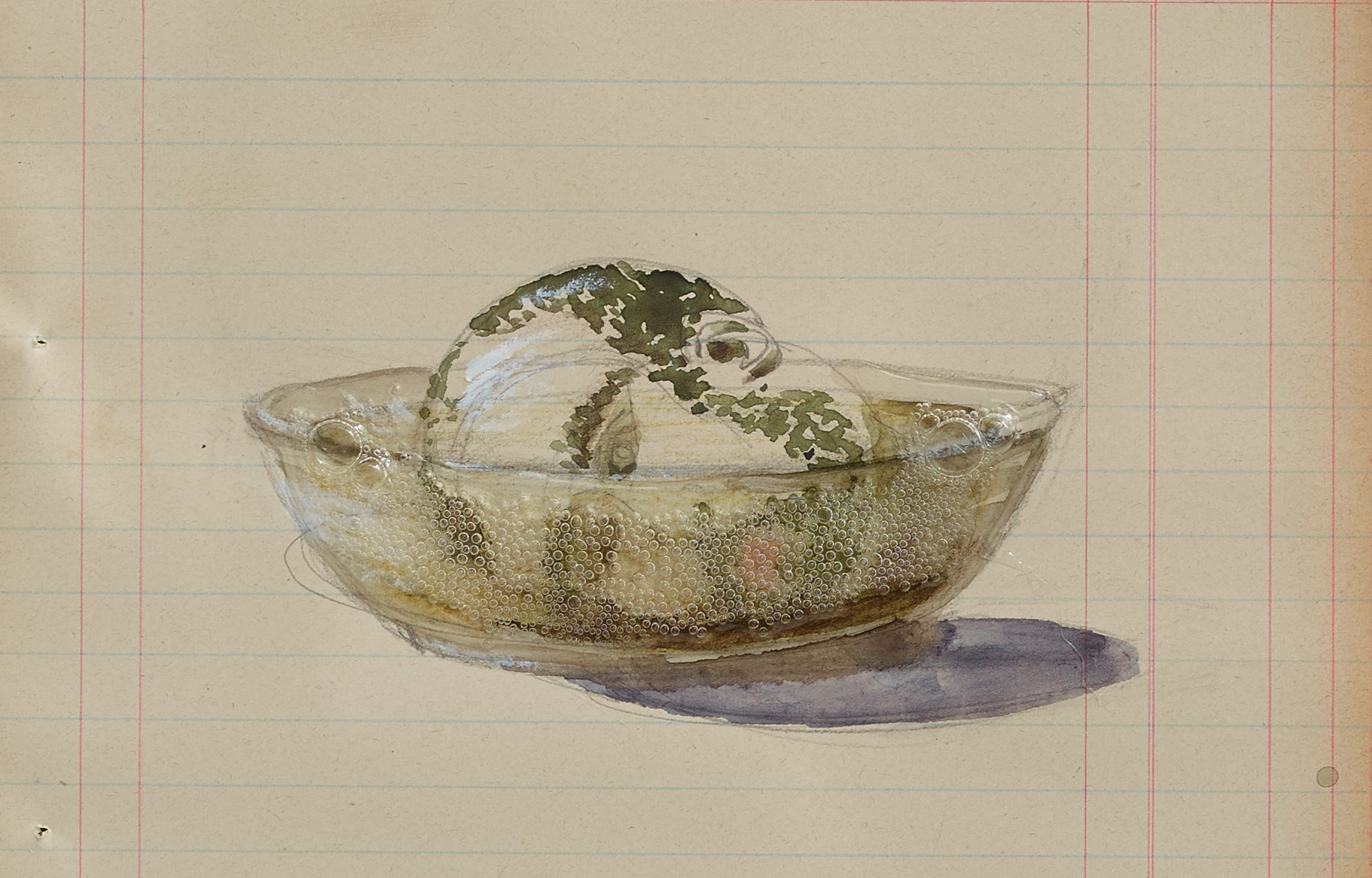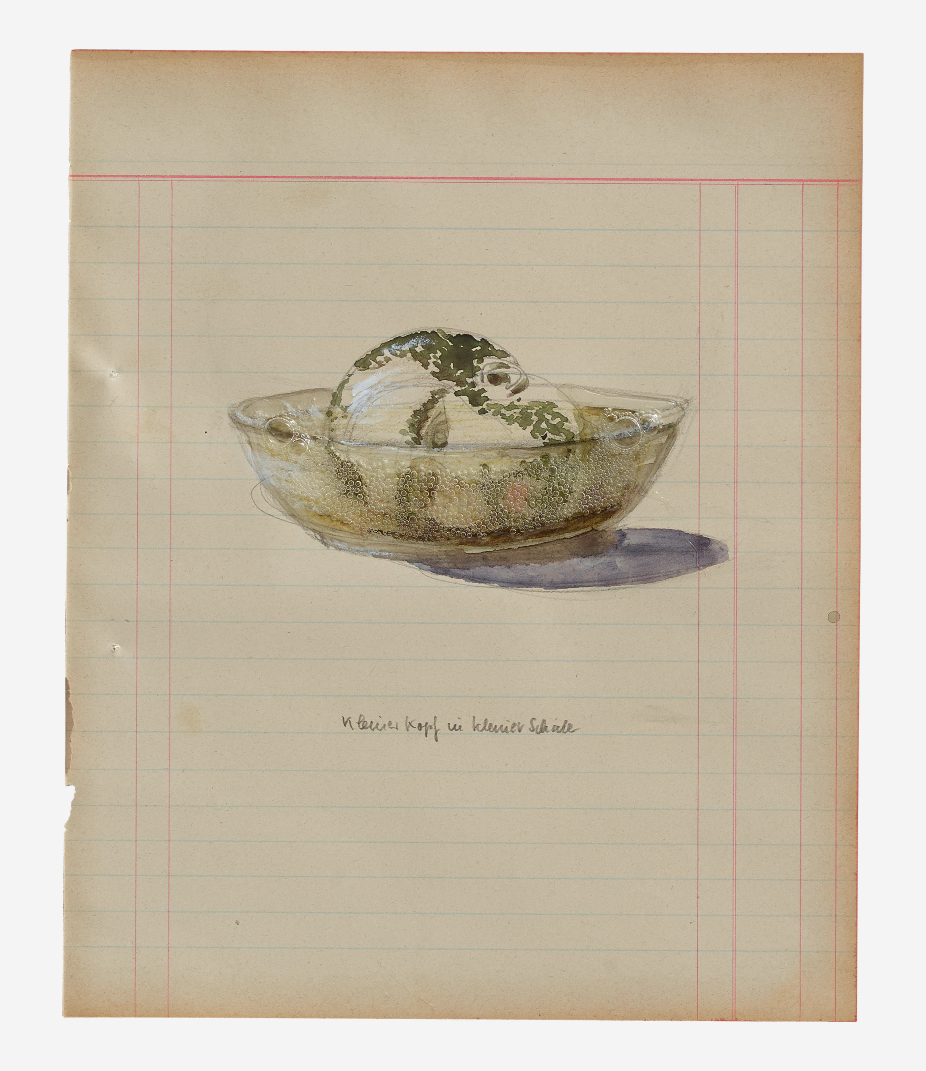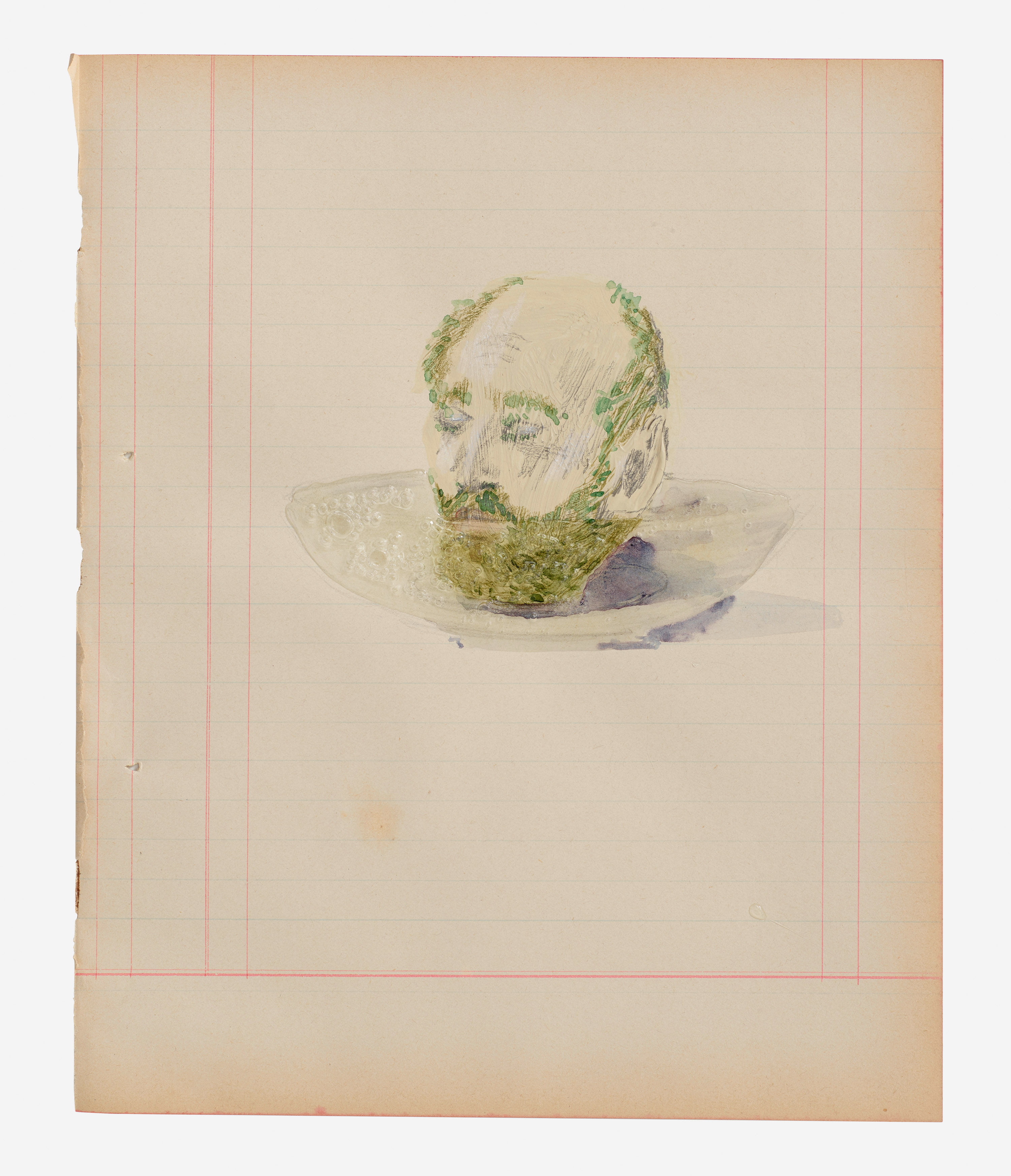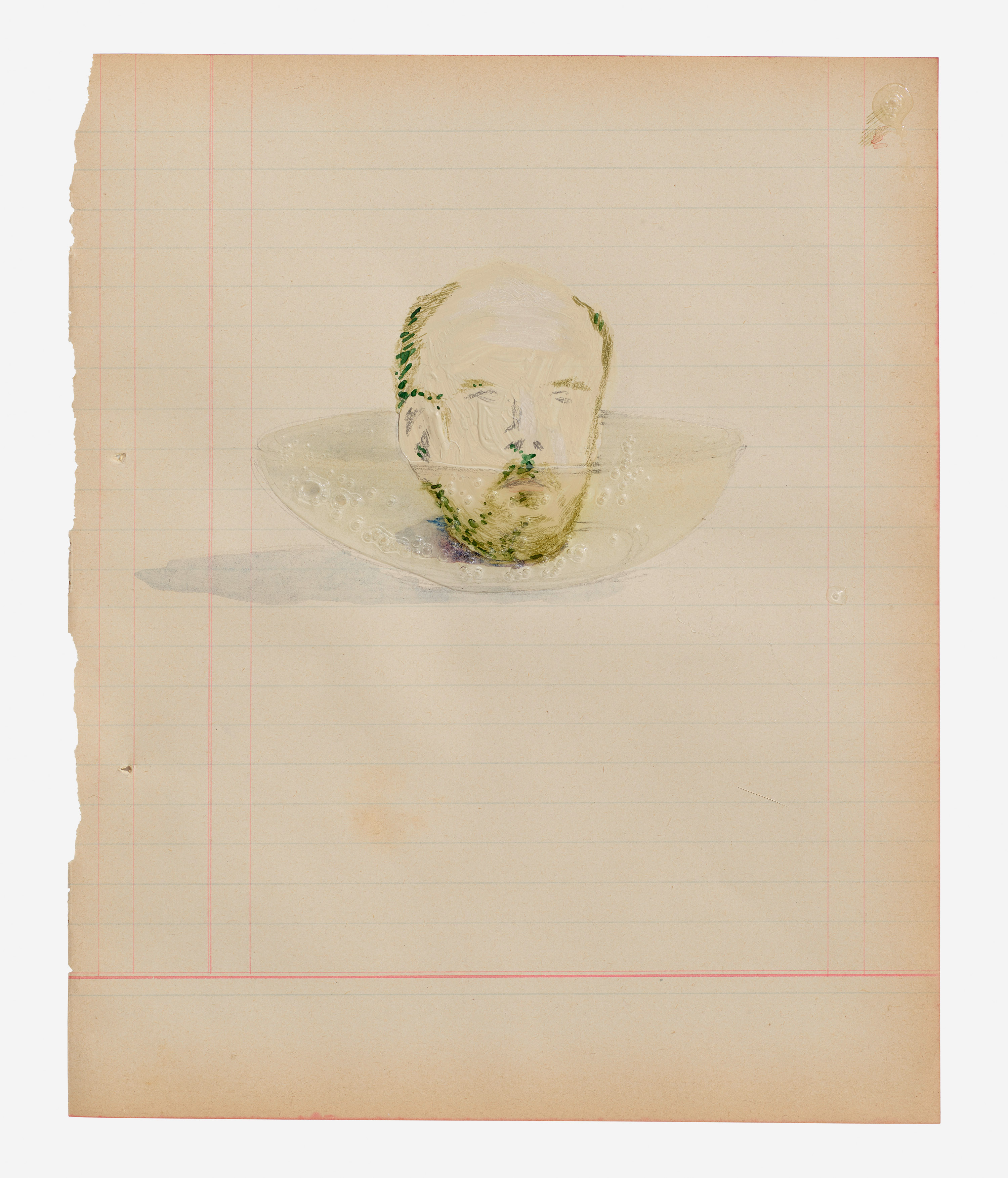 Marco Spitzar’s Werkserie „Kopf in Schale“ verweist auf ein Phänomen in der Kunstgeschichte, das man – vereinfacht gesagt – nach Karl Heinz Bohrer mit „Ästhetik des Schreckens“ benennen könnte. Wenn man so will reichen die Anspielungen ins alte Griechenland (Bildtitel: Griechischer Grünbärtiger in Schale) zu Caravaggios „Haupt der Medusa“ bis hin zu einer jüngeren Videoserie von Robert Wilson, wo abgetrennte Häupter auf prunkvollen antiken Schalen inszeniert sind und nahezu unmerklich ihre Augen bewegen.