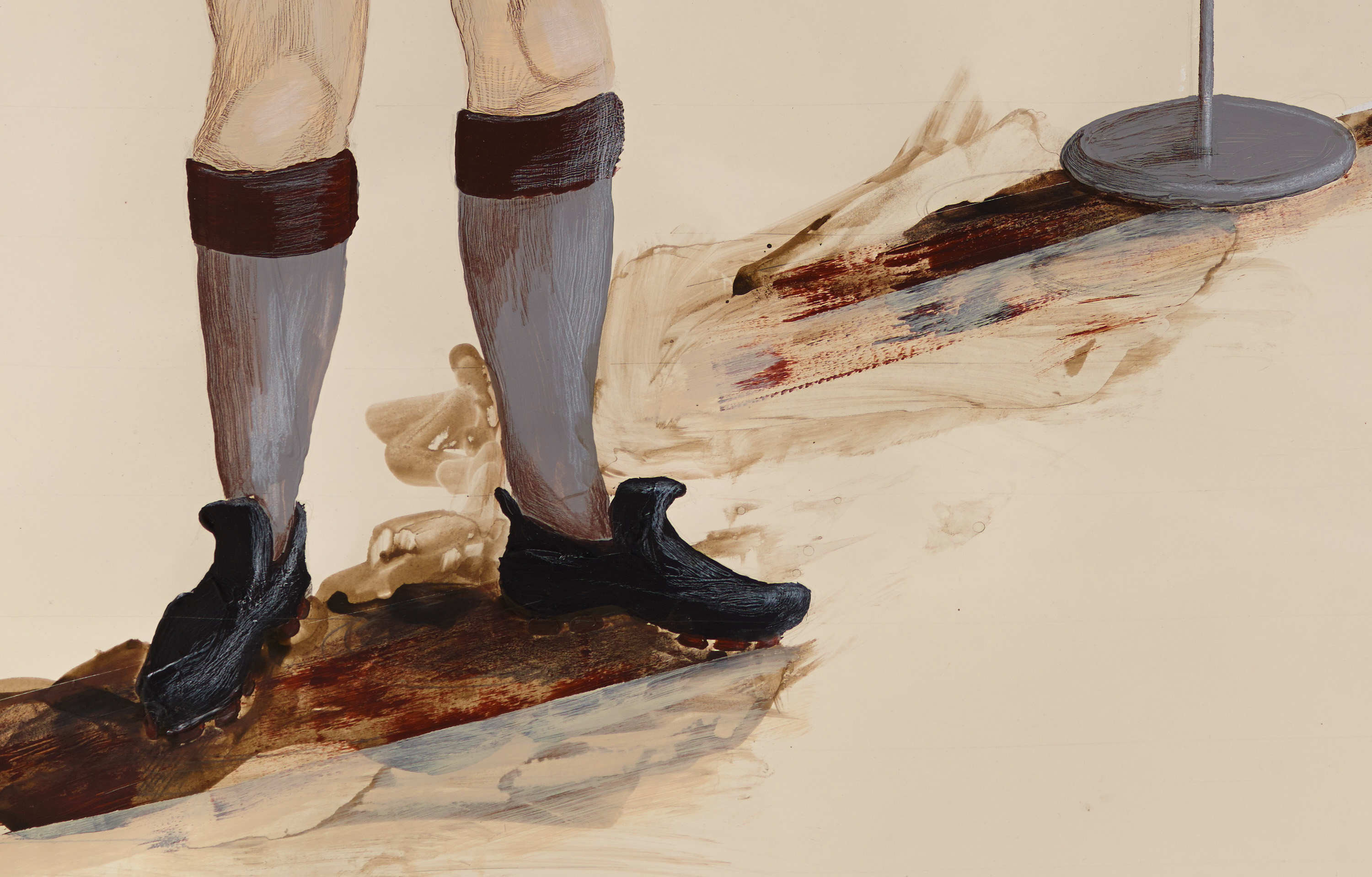 Thematisch lässt sich Marco Spitzar in dieser Serie auf das Spiel mit der Tradition ein. Gerade im Sport stellt er die Frage, auf welchen Ebenen er eine Rolle spielt. Da ist zum einen die erste, offensichtliche Bedeutung von Bewegung und Wettkampf. Dann aber geht der Künstler einen Schritt weiter und richtet den Blick des Betrachters auf die Frage nach Macht und Gesellschaft im Sport, die in einem weiteren Schritt unweigerlich politisch wird.