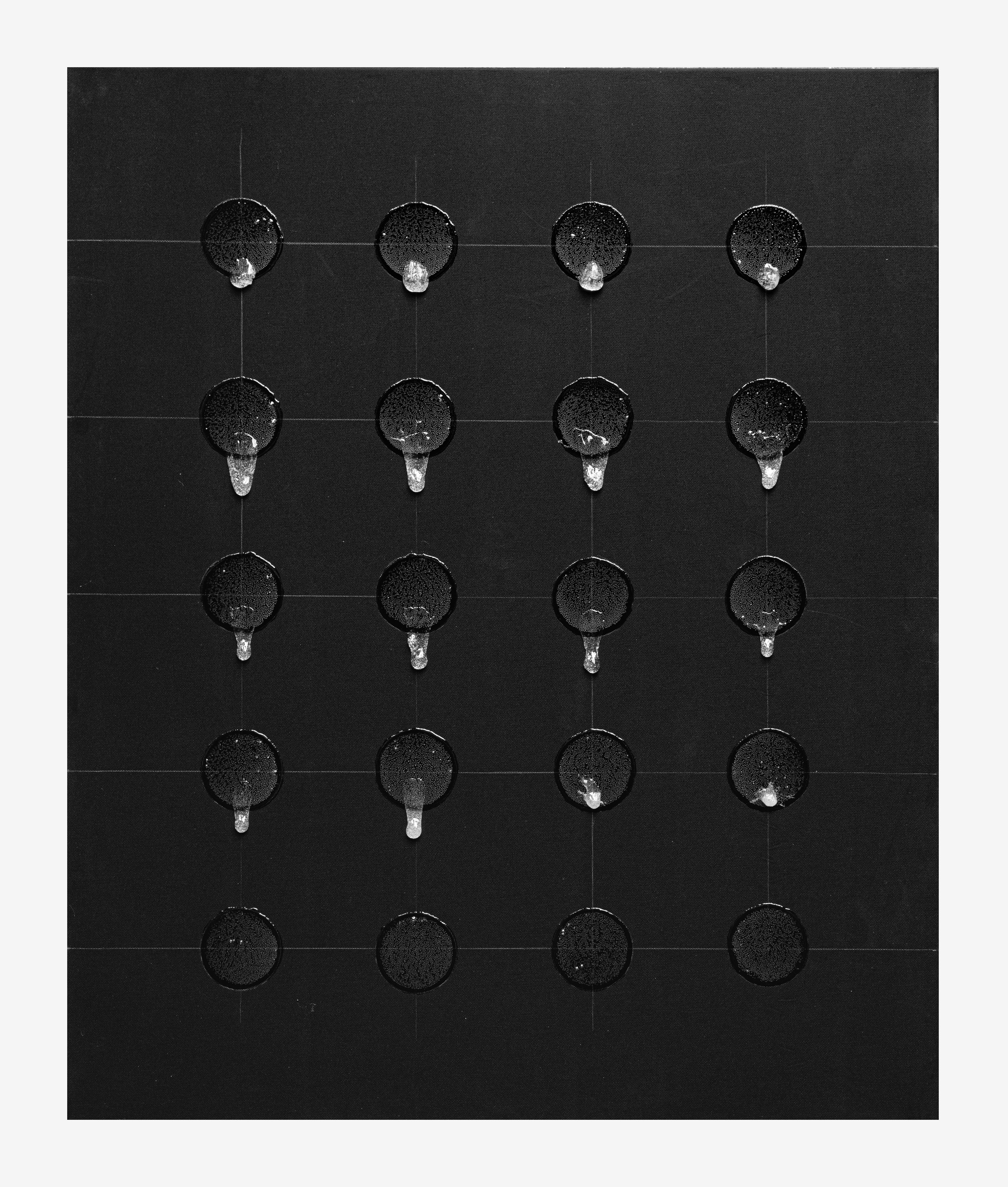 Material: Vorgetrockneter UHU KLeber auf schwarze Leinwand