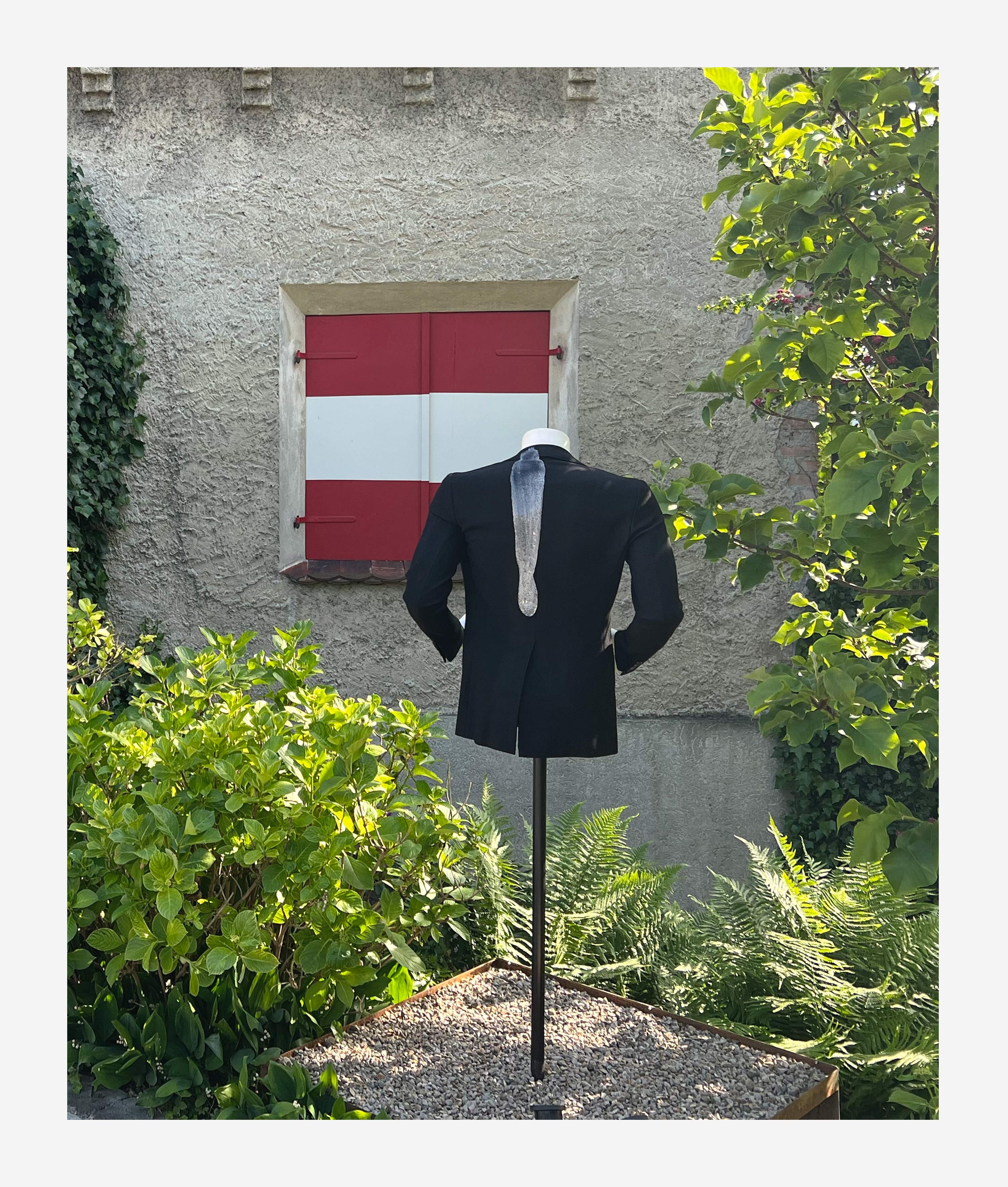 Material: Sakko aus Wolle, Kleiderpuppe, handelsüblicher UHU Kleber