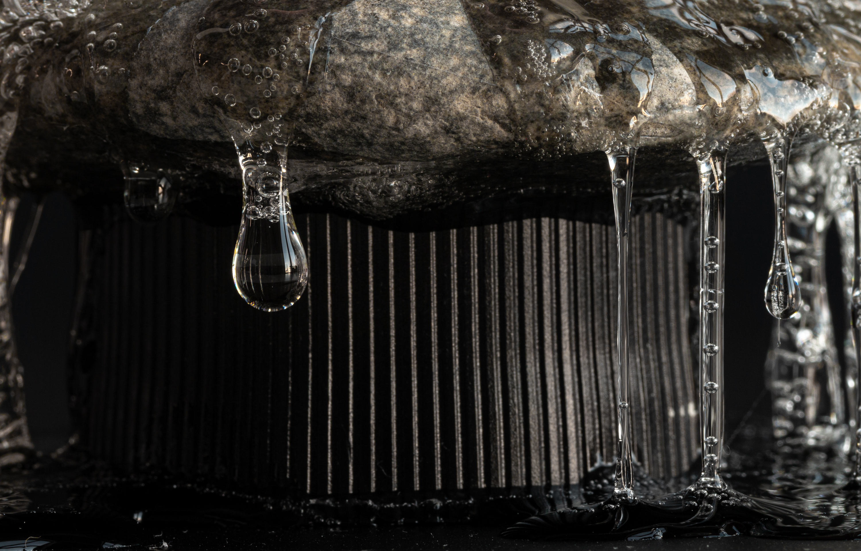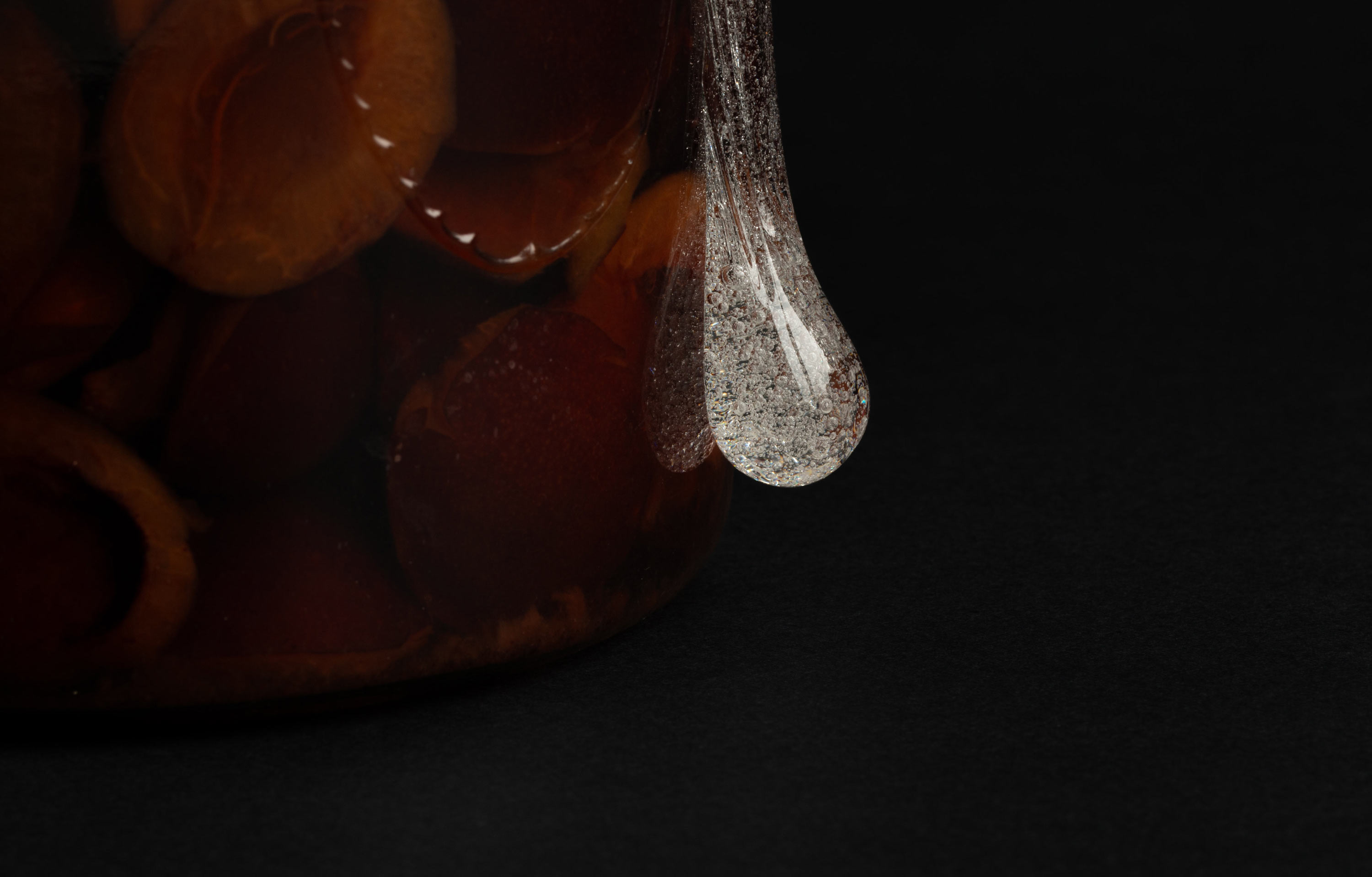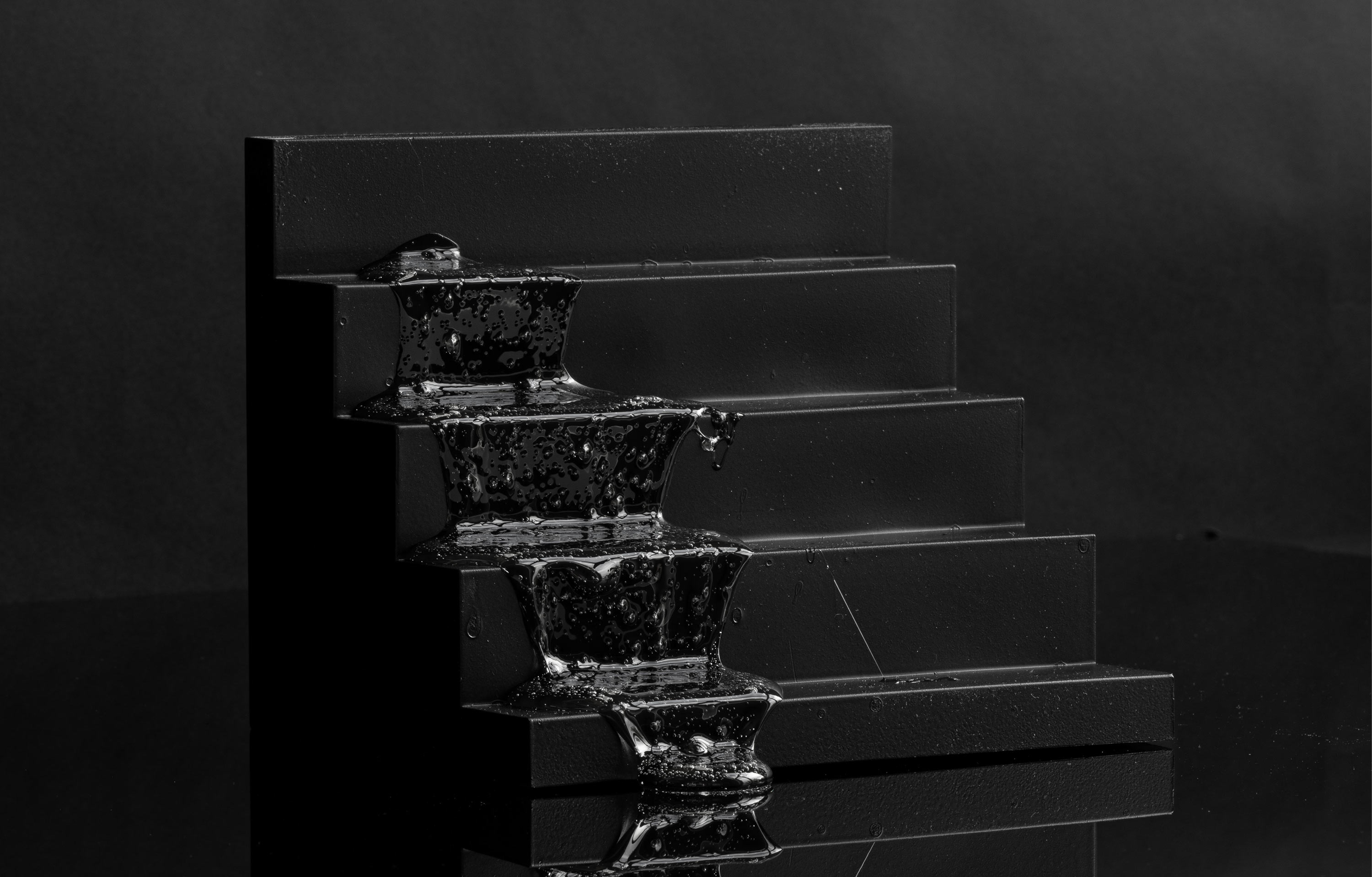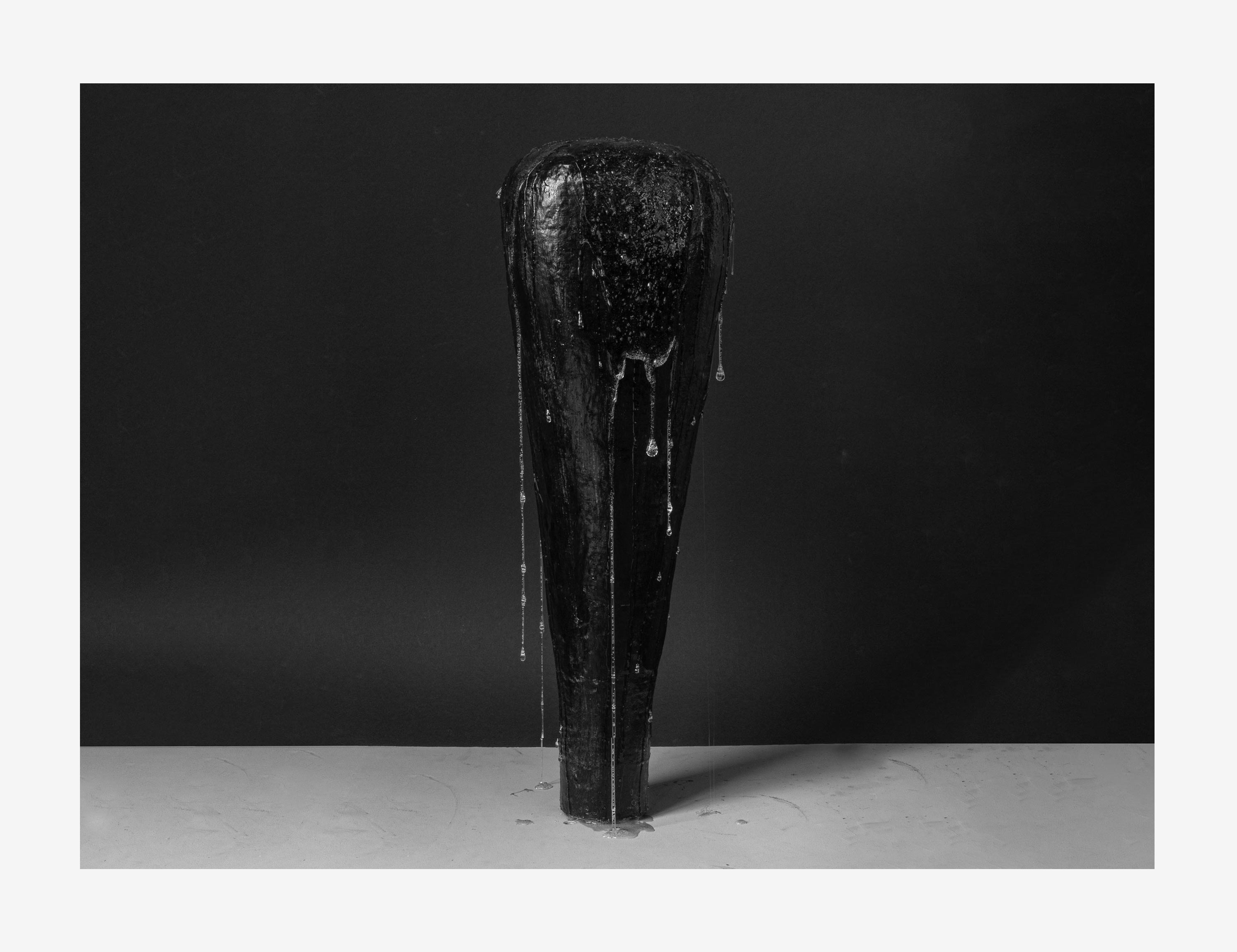 Der Fluss des Lebens kann uns zäh vorkommen. Vor allem wenn negative Rahmenbedingungen, Konflikte mit Körper, Geist und Seele Einfluss nehmen. Tiefe Stimmungen verändern unsere Wahrnehmung, verlangsamen die Zeit. Unsere Sinne sind geschärft und nehmen die vielen Eindrücke unkoordiniert zur Kenntnis. Stimmen und Geräusche können dunkler erscheinen, Gerüche stechender, Farben aber auch blasser oder grell, Berührungen verletzlich oder unspürbar, die Regler, die uns sonst verlässlich anzeigen was wir sehen und spüren, verschieben sich unmerklich in unterschiedlichste Richtungen. Ich sehe Dinge und Bewegungen oft einmal unscharf, wie in Zeitlupe, träumerisch würde eventuell einem kollektiven Gefühl nahekommen. Aber der Kleber ist es, in dem sich alles Leid für mich vermischt, ich trauern kann und eine riesige, langsam rinnende Träne vor mir sehe. Ich kann mich darauf einlassen, auf eine Zeit, die ich manipulieren kann, um denken, meditieren und trauern zu können, vor allem ohne die Gewissheit, mich in Schwermut zurückzulassen.