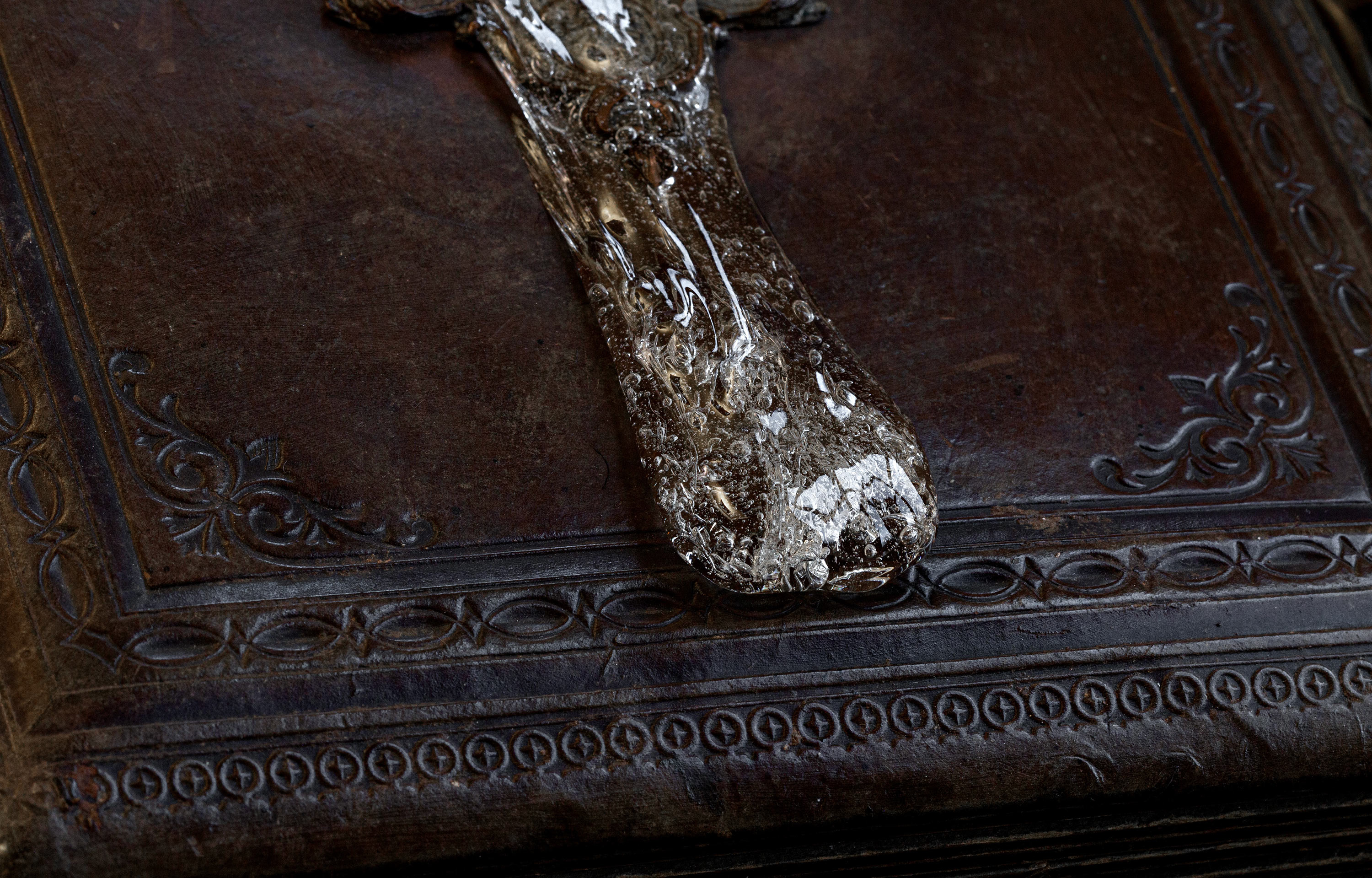 Material: UHU Kleber auf historischem Buch