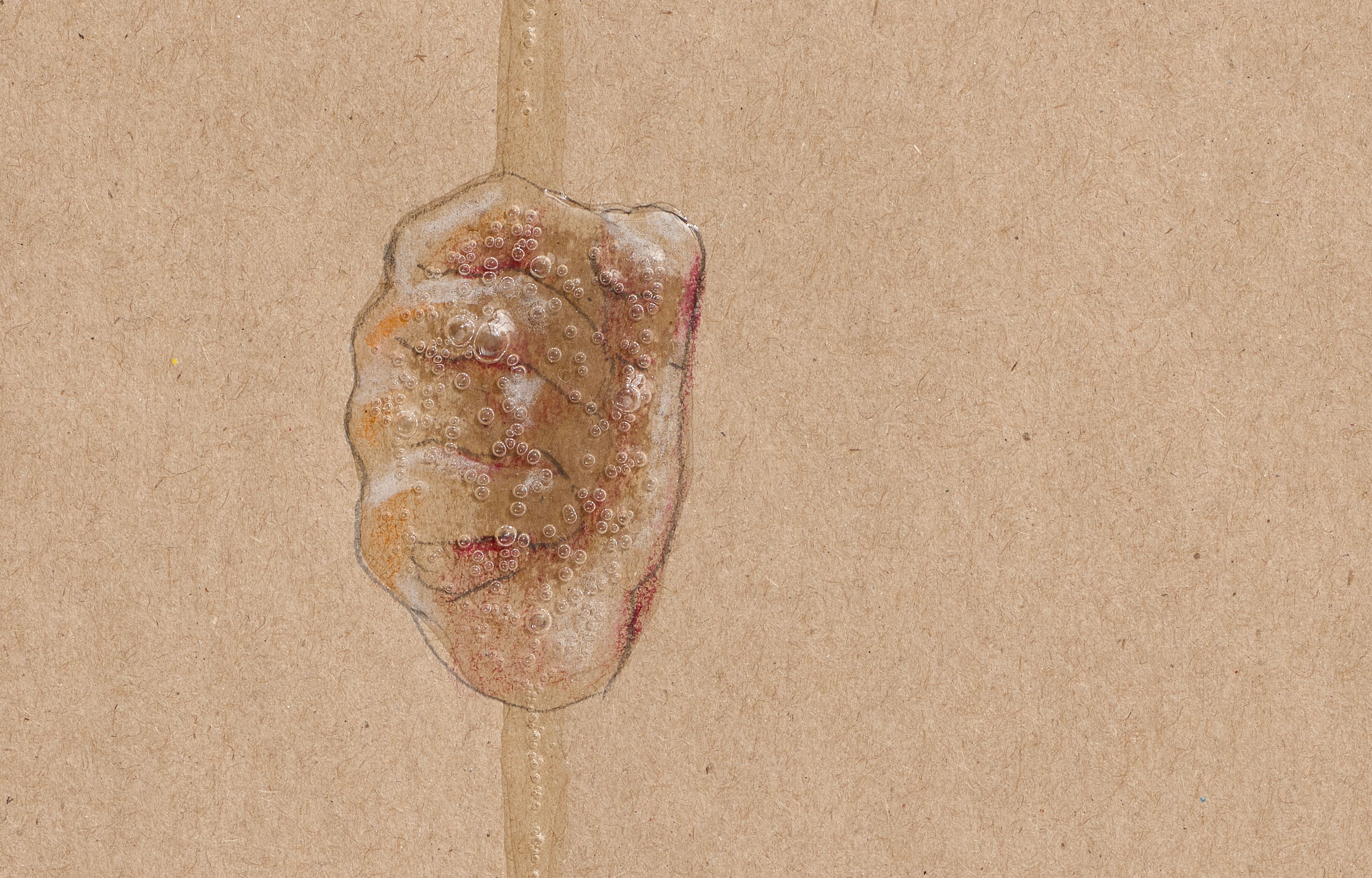 Material: Buntstift mit UHU auf braunem Transparentpapier