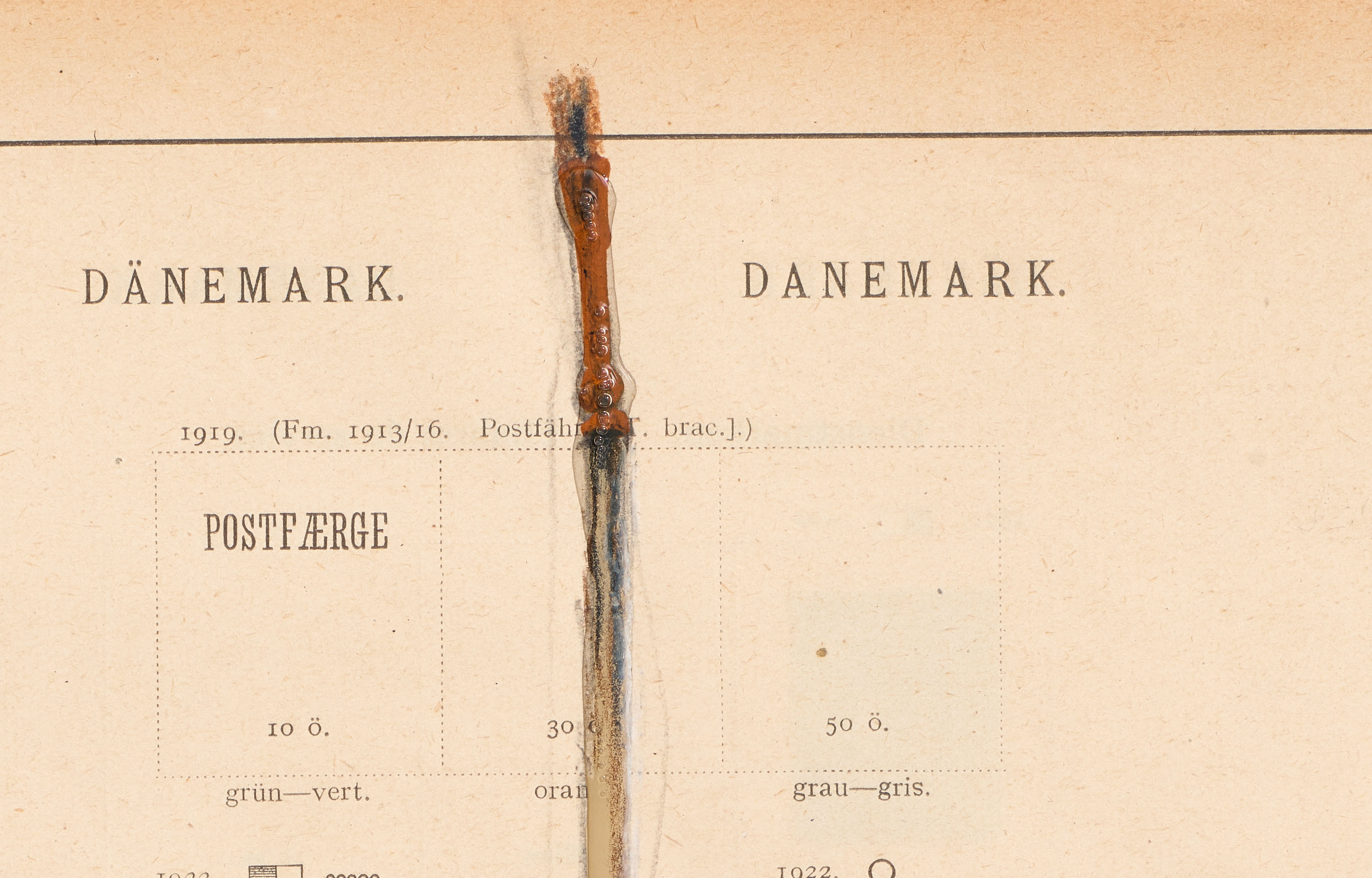 Material: Buntstift und Edding mit UHU auf historischem Papier