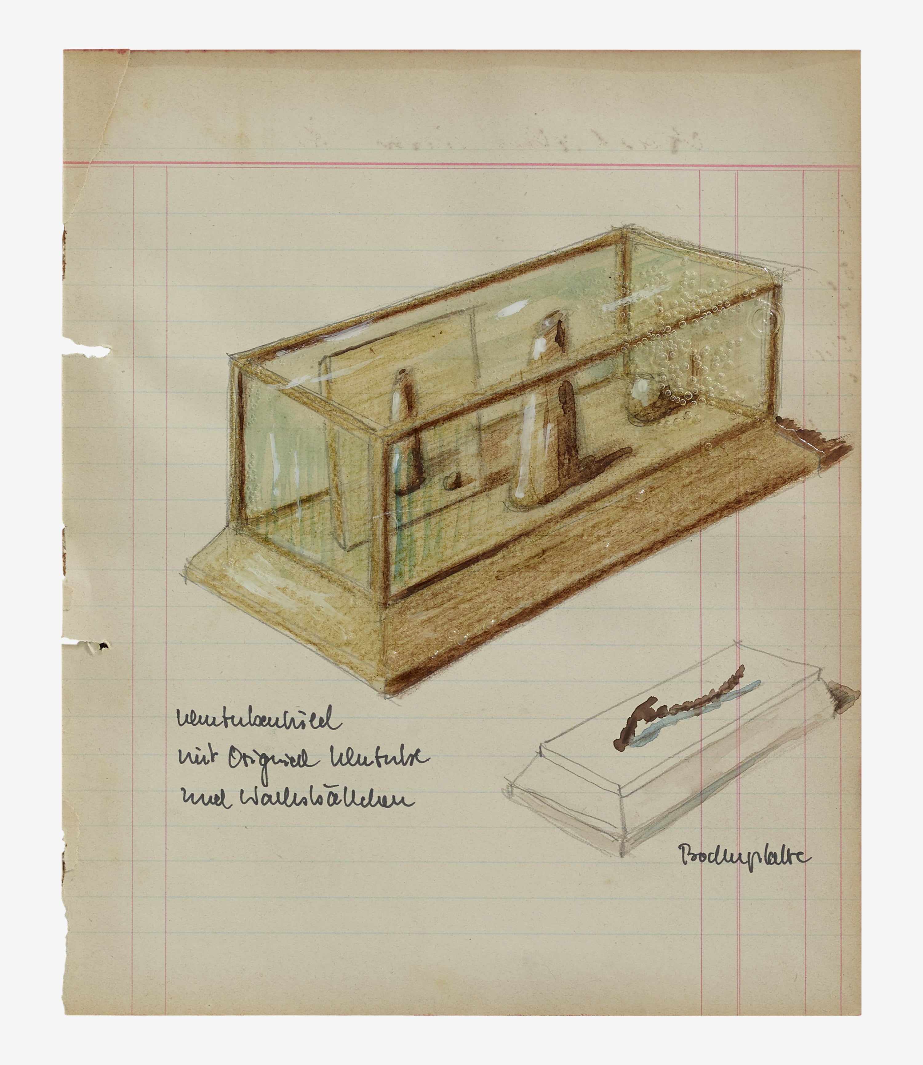 Material: Buntstift mit UHU auf historischem Papier