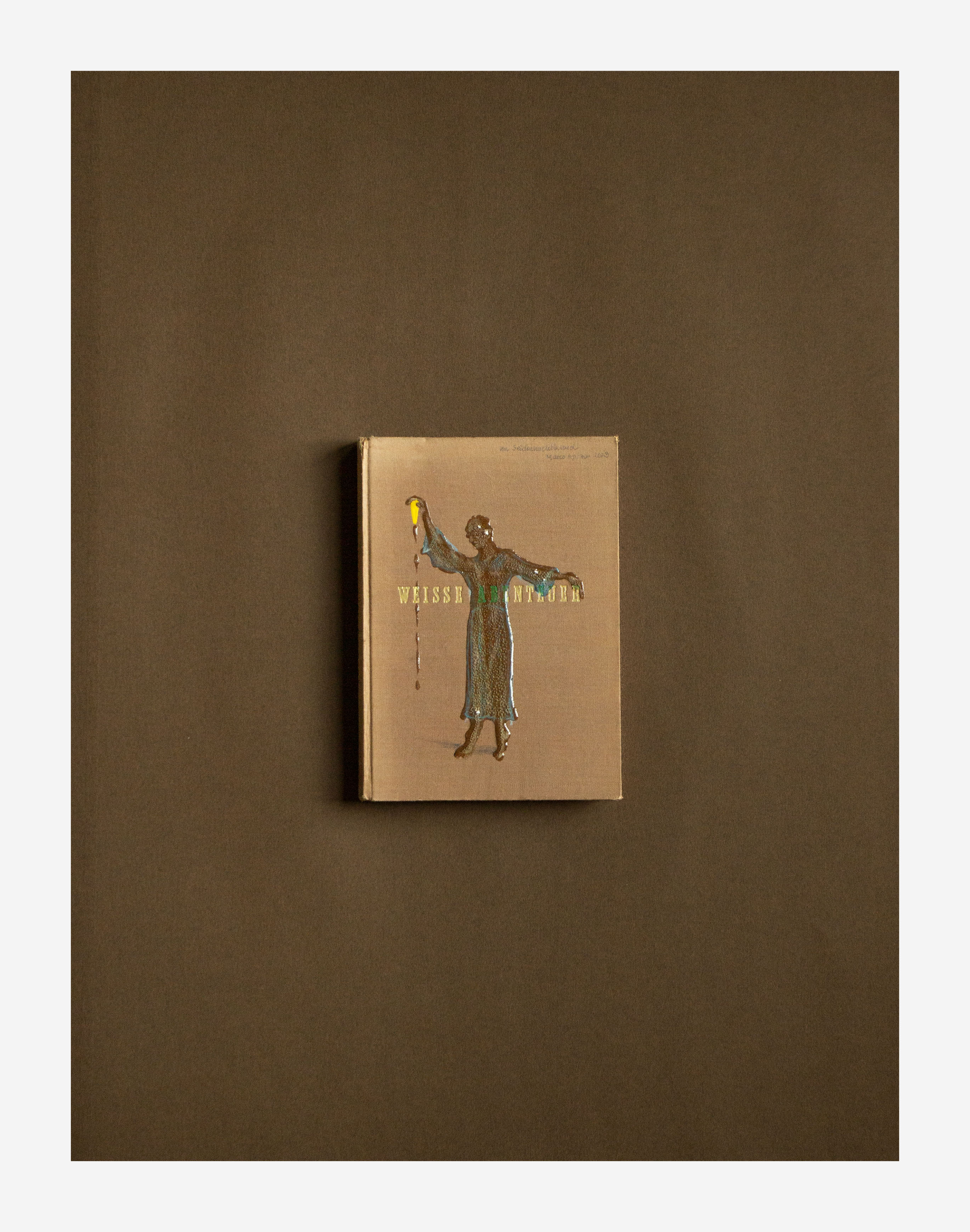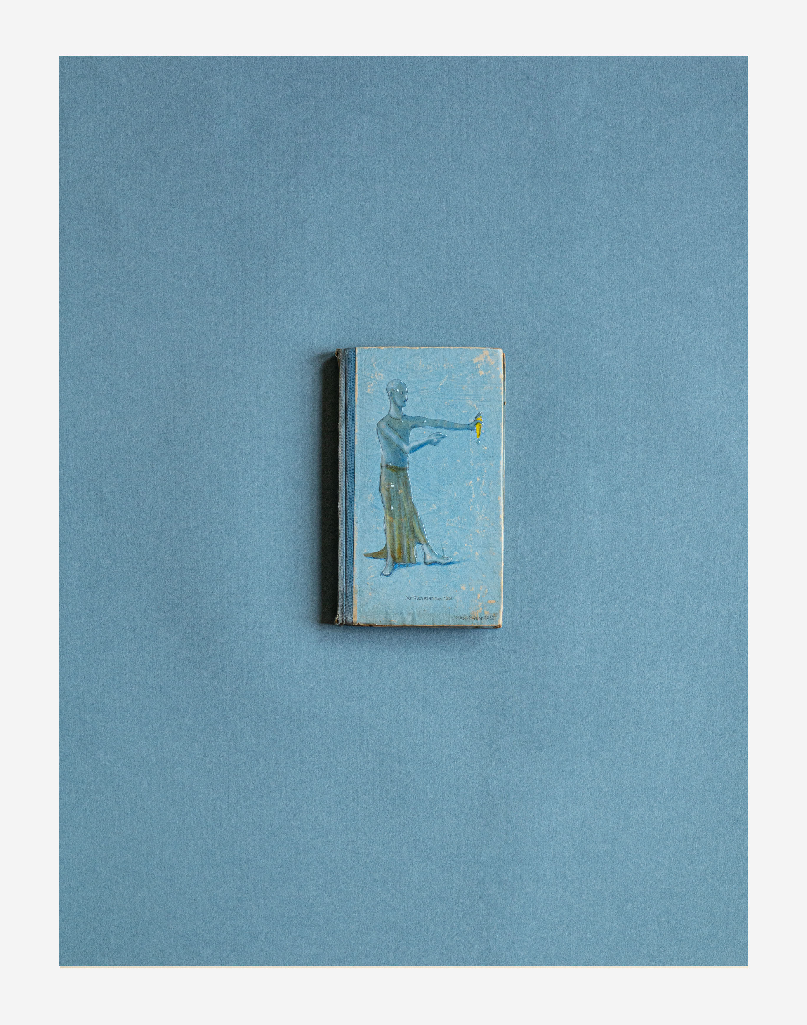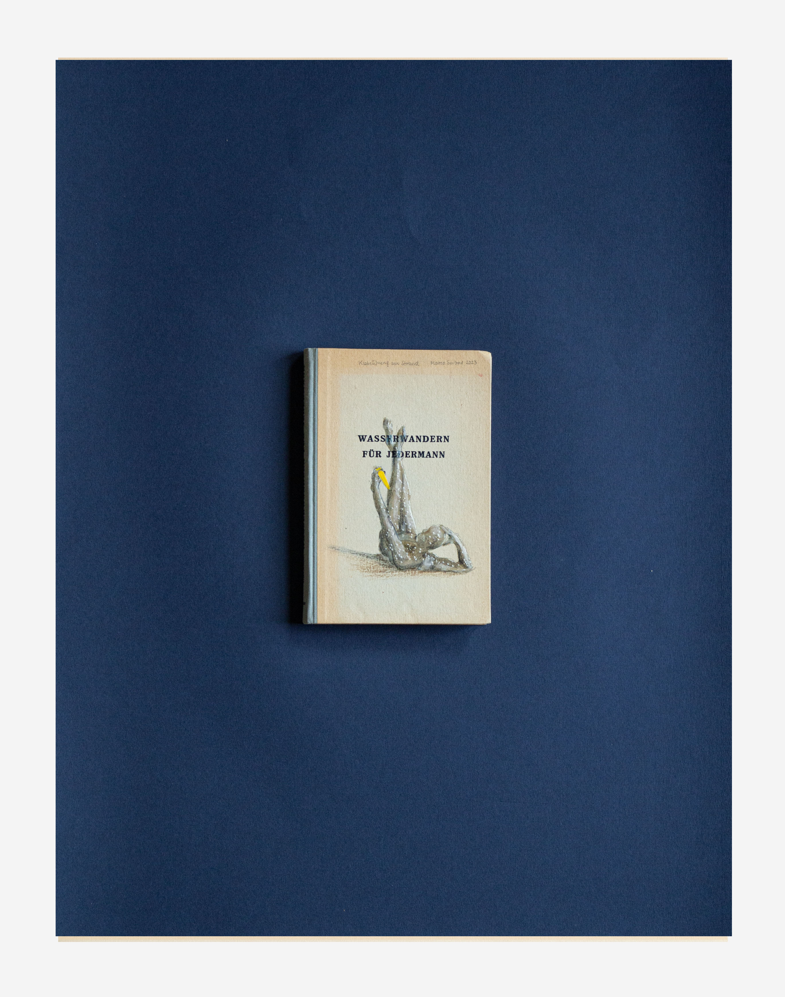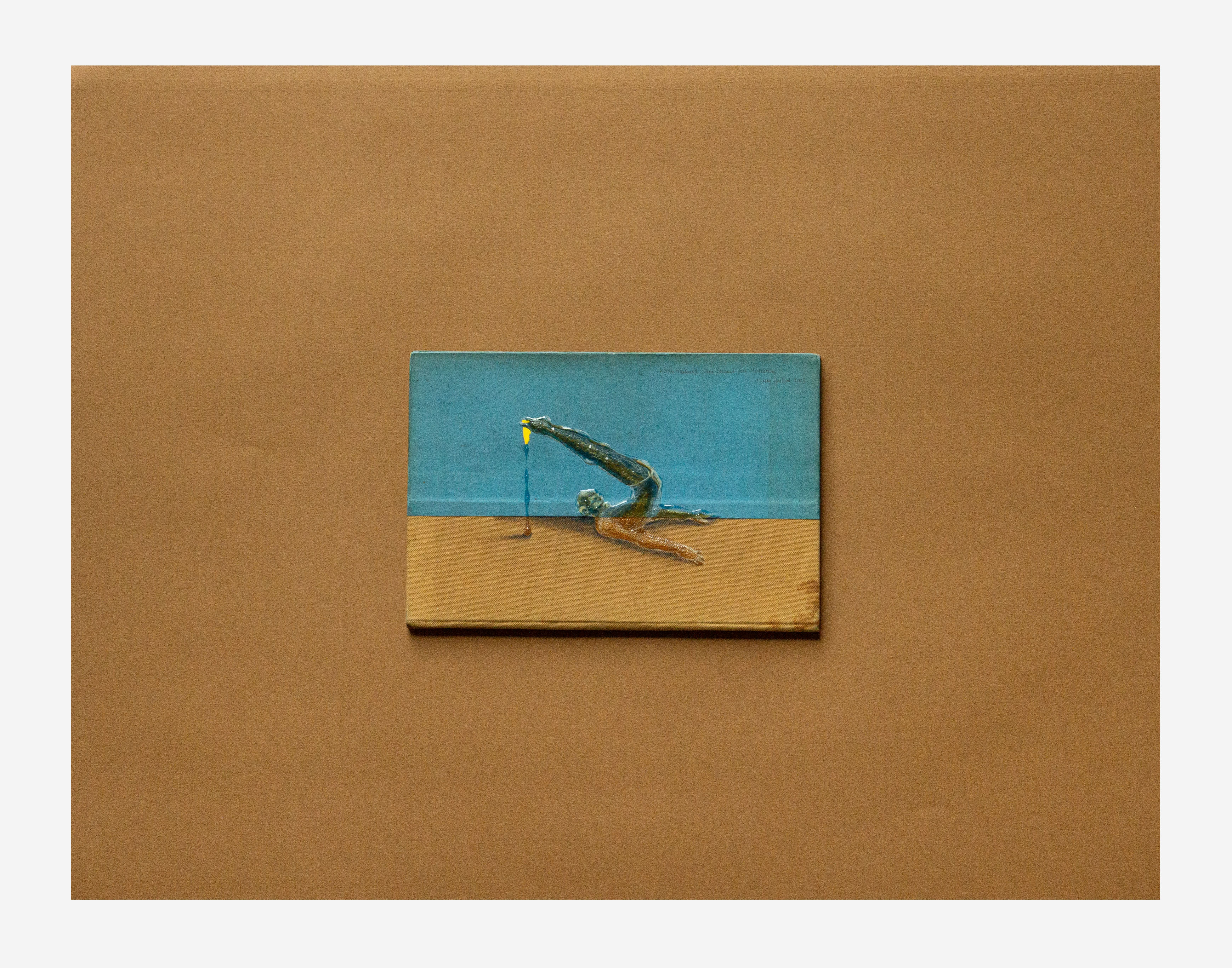 Alles begann mit dem Aufbau einer kleinen Bibliothek trivialer Tourismus und Ski Literatur noch in der Schulzeit, gesteigert durch den Wahn viele Altwarenhändler und Buchantiquariate in Wien damit zu beauftragen Bilderbücher und Zeitschriften aus der Vorkriegszeit zu sammeln und zurückzulegen. Täglich, Kistenweise. Gestapelt vor der Wohnungstür. Sie wurden kategorisiert und einsortiert. Sie waren bis auf einzelne Ausnahmen nicht viel wert. Mich interessierten die alten Abbildungen und vor allem die wunderschönen verblichenen Farb- und Materialkombinationen der Einbände ohne Schutzumschläge. Sie erinnerten mich an die vielen Ordner und Stoffmustersammlungen meines Vaters. Immer wollte ich ein eigenes Farbsystem mit den durch Licht verblichenen Farben anlegen. Industriell nicht herstellbar, einzigartig in Haptik und Ausstrahlung. Erst jetzt, 2023, als ich mich von vielen Büchern trennen wollte, konnte ich nicht anders als sie mit dem Phantasiewissen der Klebewelt zu verbinden. Eigene Titel, fast alle ohne Text, nur mit den Kategorien der Bewegungsisziplinen der Klebefiguren beseelt. Sport, Meditation, Tanz, eine Architektur der Klebeübungen und Trainingsformate. Es sind die Farben, die Ränder, die Flecken, das Abgewaschene, das Nebeneinanderliegen dieser wunderschönen Farbflächen, die ich in die digitale reine Bildschirm gesteuerte Welt hinüber retten möchte.