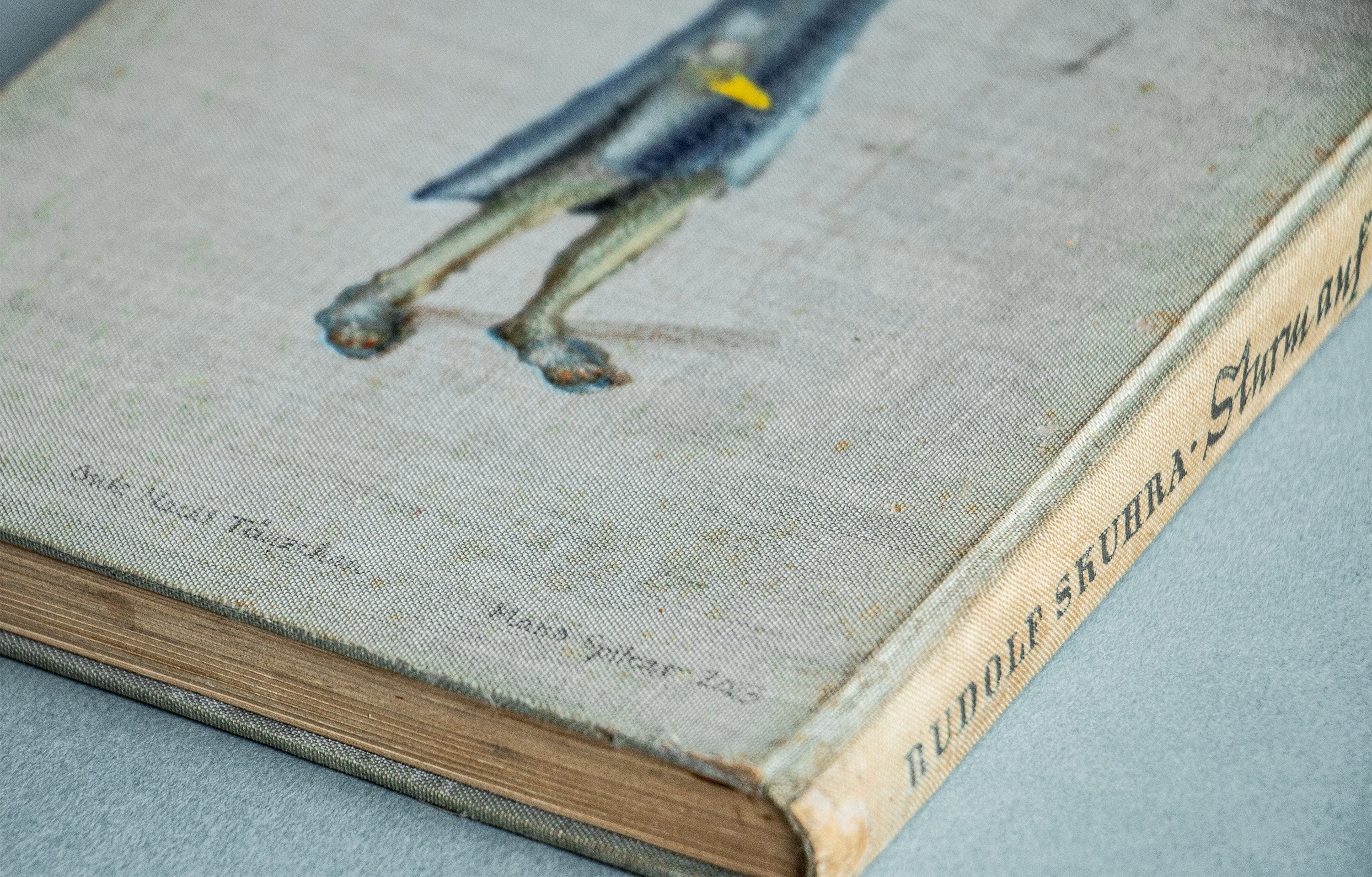 Klebefiguren auf alten Bucheinbänden
